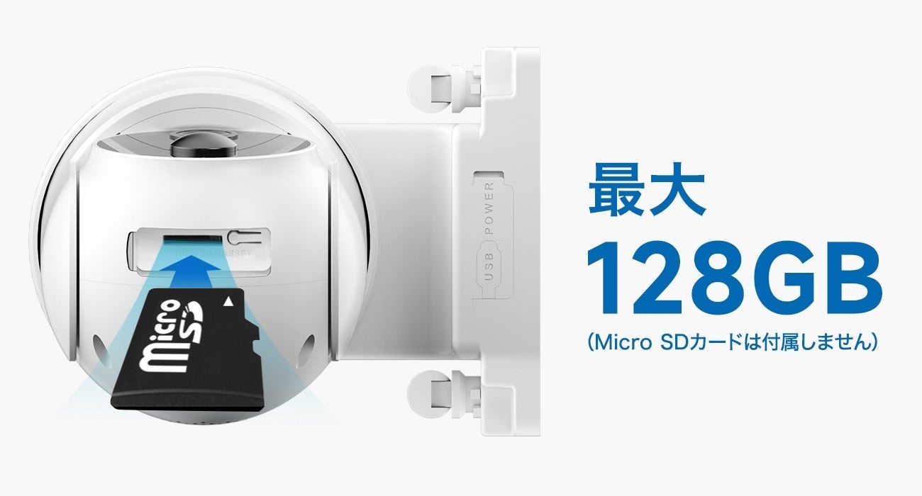 A:いいえ、マイクロSDカードは付属していません。CLASS4以上のマイクロSDカード128GBまで対応しています。