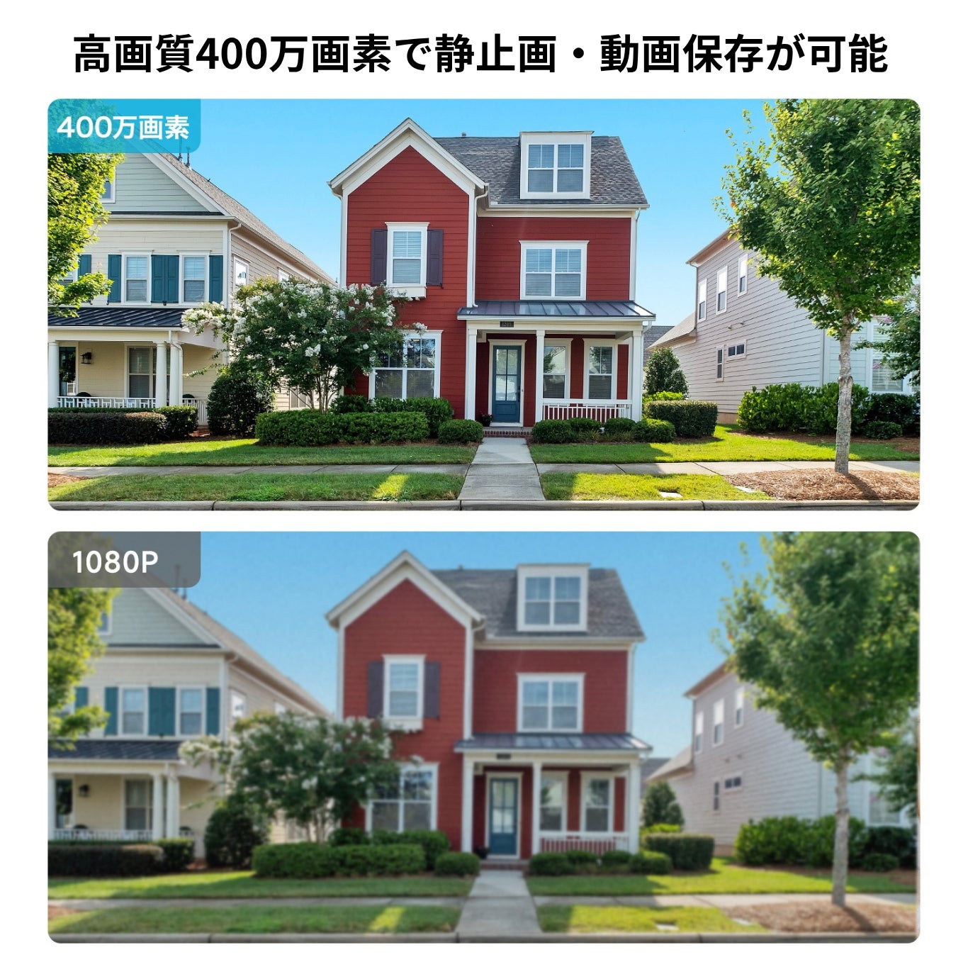 高感度CMOSカラーセンサーを内蔵しており、鮮明な映像を残すことができます。3種類の表示モードを自由に選択でき、白色光と赤外線を活用して夜間でも鮮明なフルカラーの映像で利用できます。