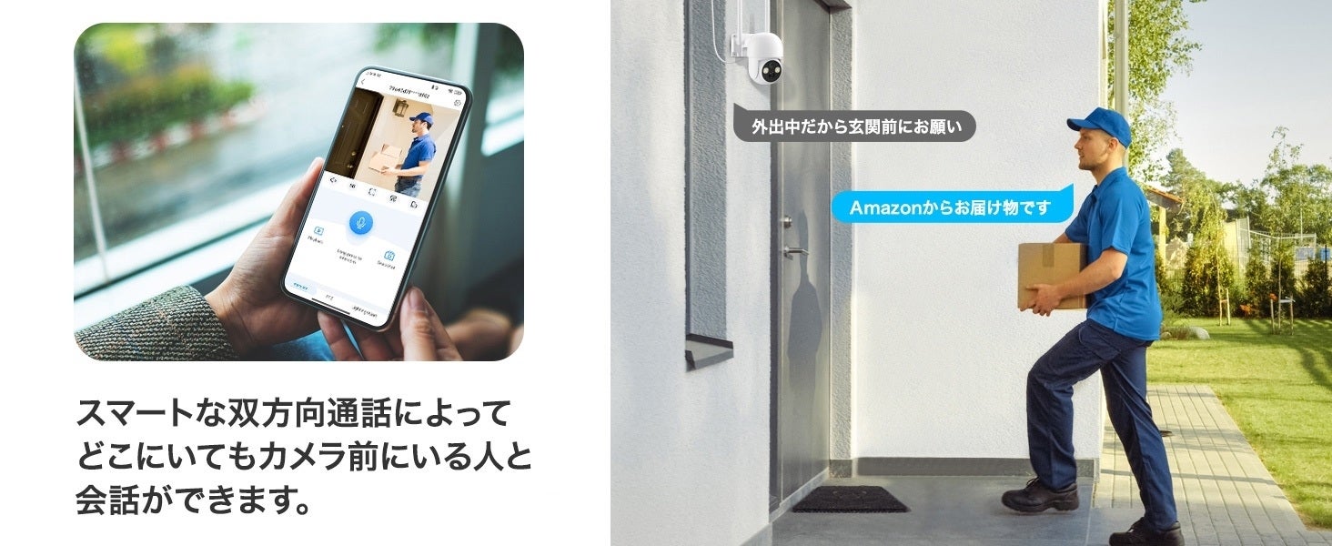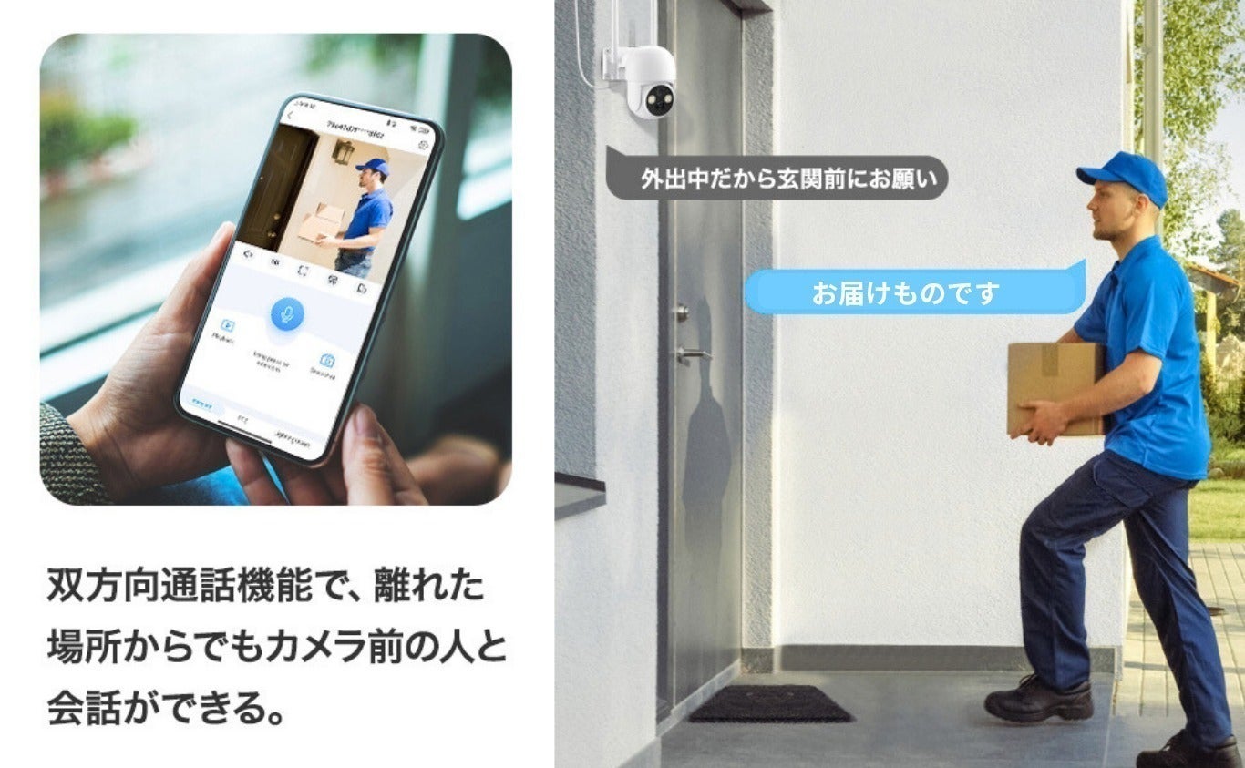 マイクとスピーカーが内蔵されており、専用アプリを介してカメラに映る訪問者と会話することができます。もし利用時に不具合が発生した場合には、お気軽にお問い合わせください。専門スタッフにより技術サポートを提供することで問題を解決いたします。