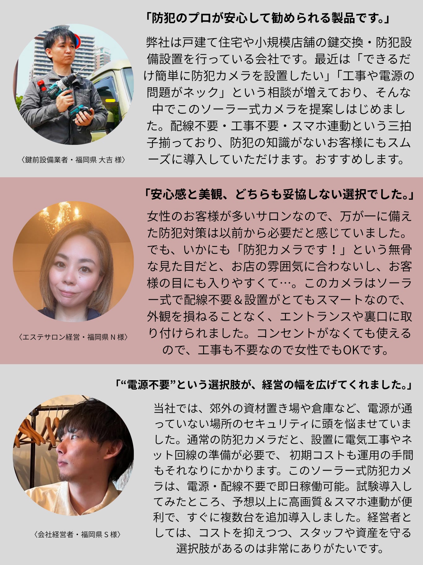 最後までお読みいただき、ありがとうございます。「電源がないから」「工事が面倒だから」と防犯対策をあきらめていた方へ。私たちは、このソーラー式防犯カメラで、もっと手軽に、もっと自由に、あなたの大切な場所と人を守るお手伝いができればと願っています。皆さまからのご支援が、今後のさらなる開発や改良につながります。ぜひこの機会に、【ソーラー式防犯カメラ】のある安心生活を体験してみてください。あなたの“見守りたい”に、応えたい。ご支援よろしくお願いいたします。