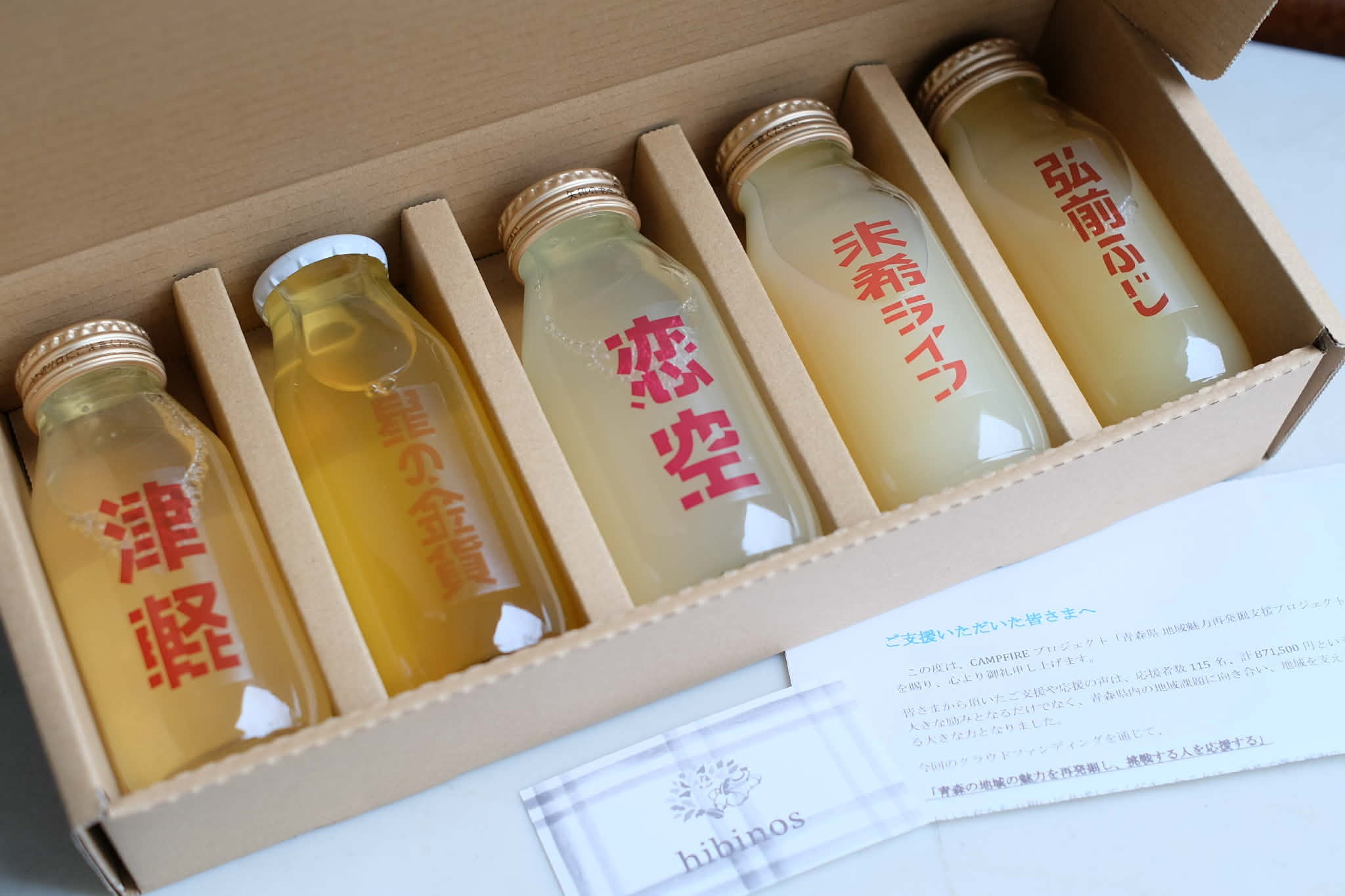 【リターン品「青森県産りんご100% ヒビノス林檎園の品種別りんごジュース(180ml)5本セット」が発送されます!】