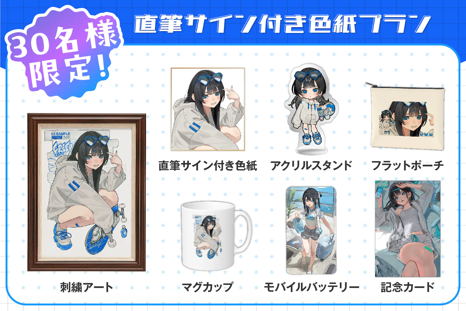 ▲壱色青藍のグッズが揃うプランです!(※刺繍アートは含まれておりません。)
