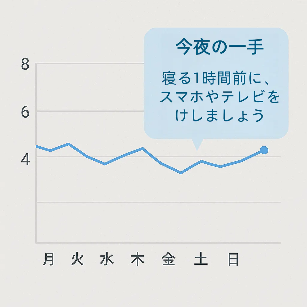 自身の体験から、起床一定/就寝前60分デジタル断ち/朝の光2分+AIでの可視化という“やり直しが効く仕組み”を確立。