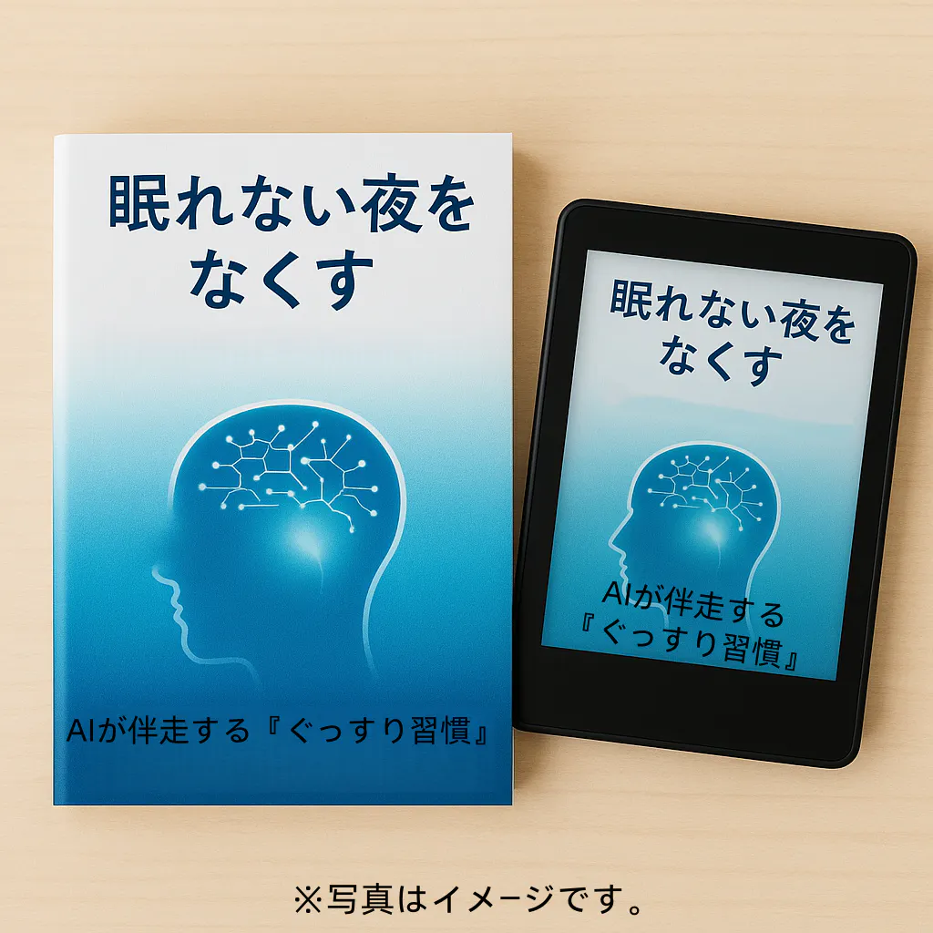 「結局、今夜なにをすれば?」に答えるための一冊。起床一定・就寝前60分デジタル断ち・朝の光2分+AI可視化で“やり直しが効く睡眠術”を手順化しました。
