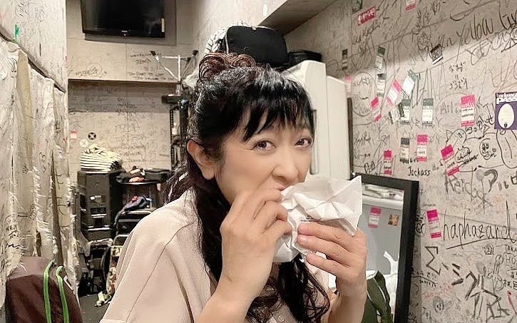 3回目の朝ごはんについてですが、1回目は、家で食べて、2回目は、途中で食べて、これが3回目だと主張。時間的には昼なんですけどね(笑)もちろん、リハのあとは、メンバーとちゃんと昼食を取ります。そして、必ず、肉を大盛り、または肉をもう一品食べます。もうほとんど、二人前です!見ているこっちが食傷気味になるほど、よく食べます。しかも、昼食後、コンビニに寄り、おにぎりだの、サンドイッチだのを買うんです。彼女に言わすと、それは「おやつ」らしいです(笑)