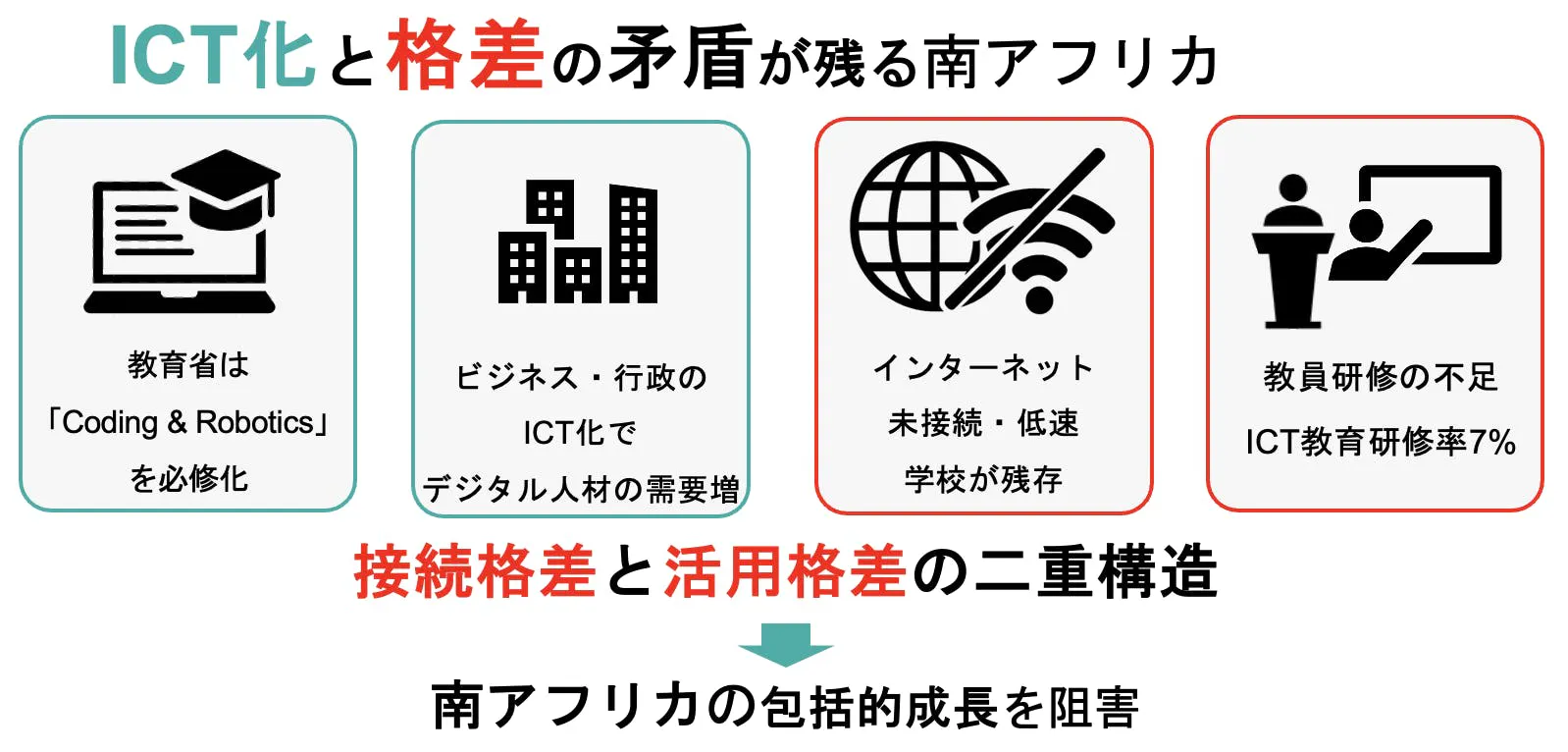 今回私たちは、現地の連携パートナーと協力しながら、「南アフリカでアンプラグドICT教育を届けるプロジェクト」を行います。