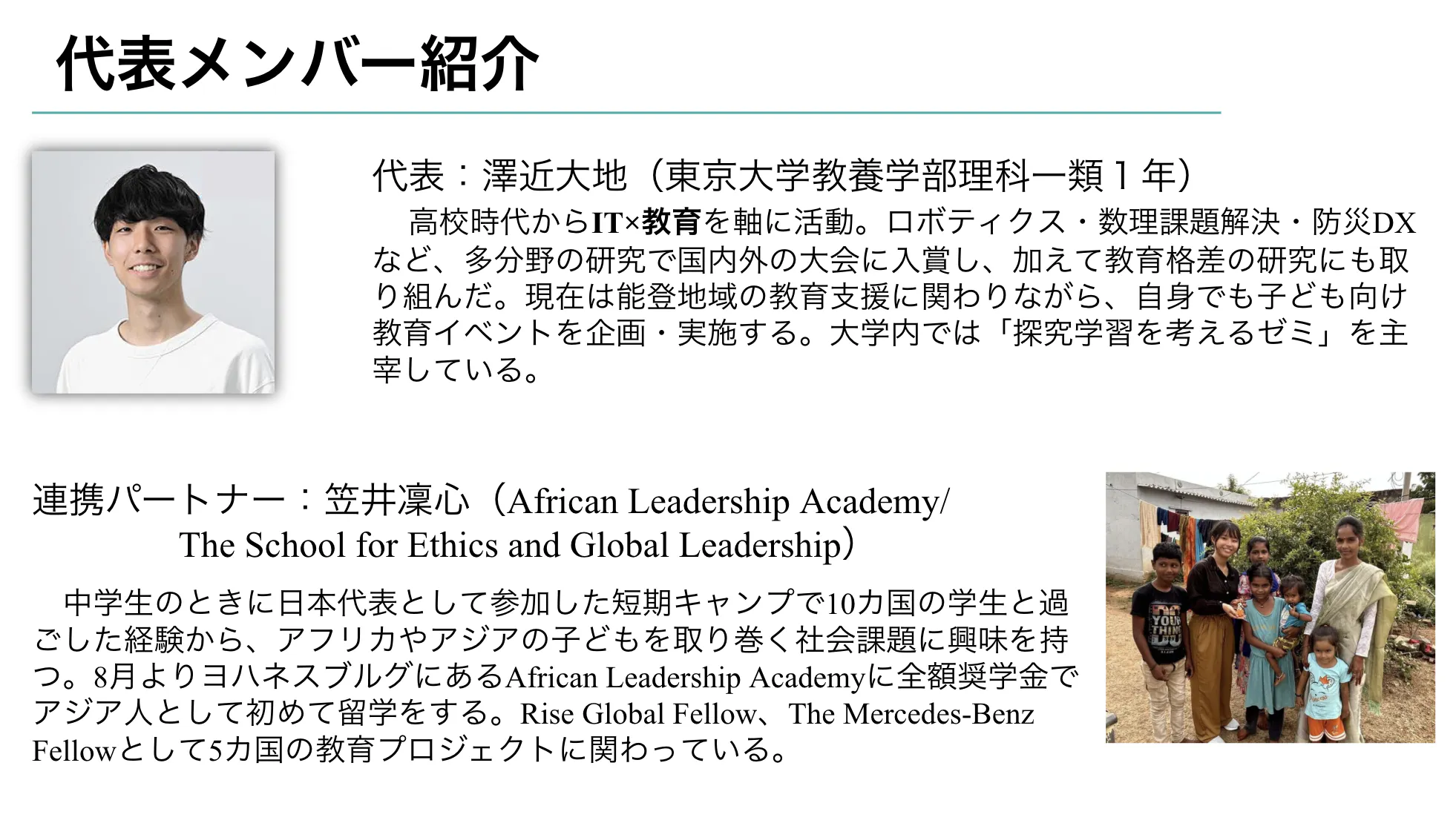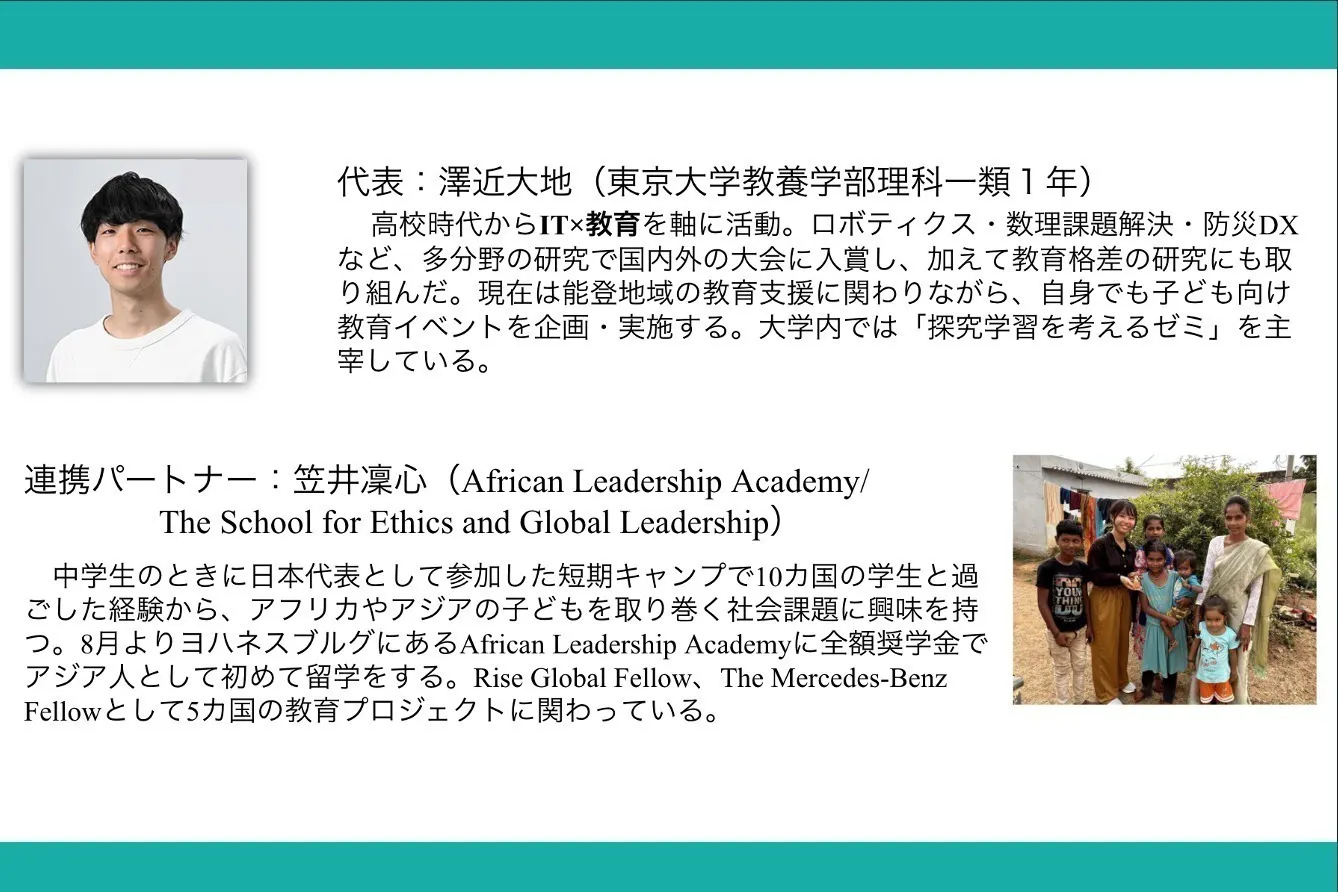 今、行動できるようになった自分たちが、未来への恩送りのために南アフリカへ向かいます。今回のプロジェクトは、子ども達の将来を広げる一歩になると強く信じています。
