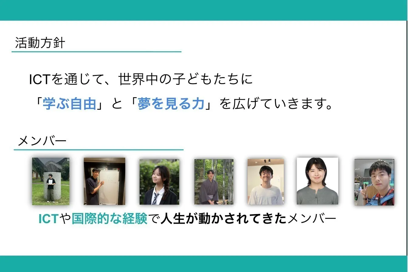 私たちUbuntureは、ICT教育を通じて「学びの自由」と「夢を見る力」を世界中の子供たちに広げる活動を行う東京大学発の学生団体です。
