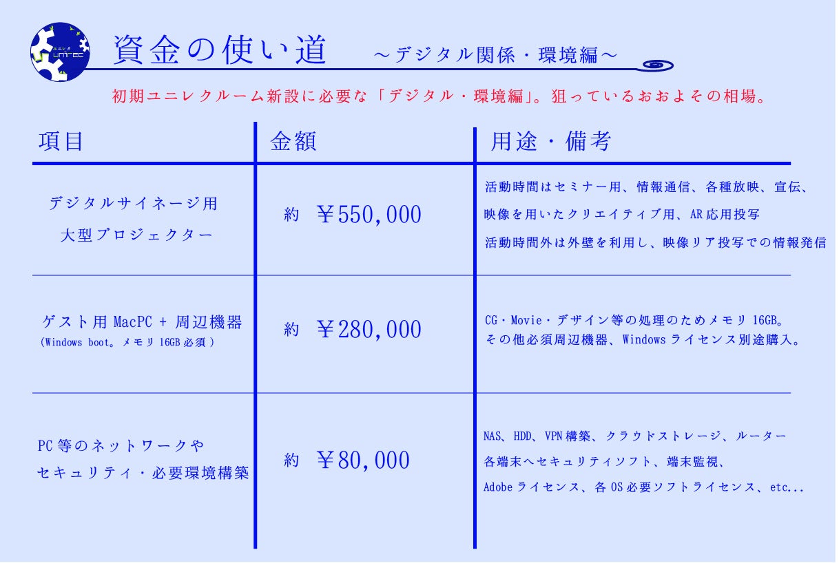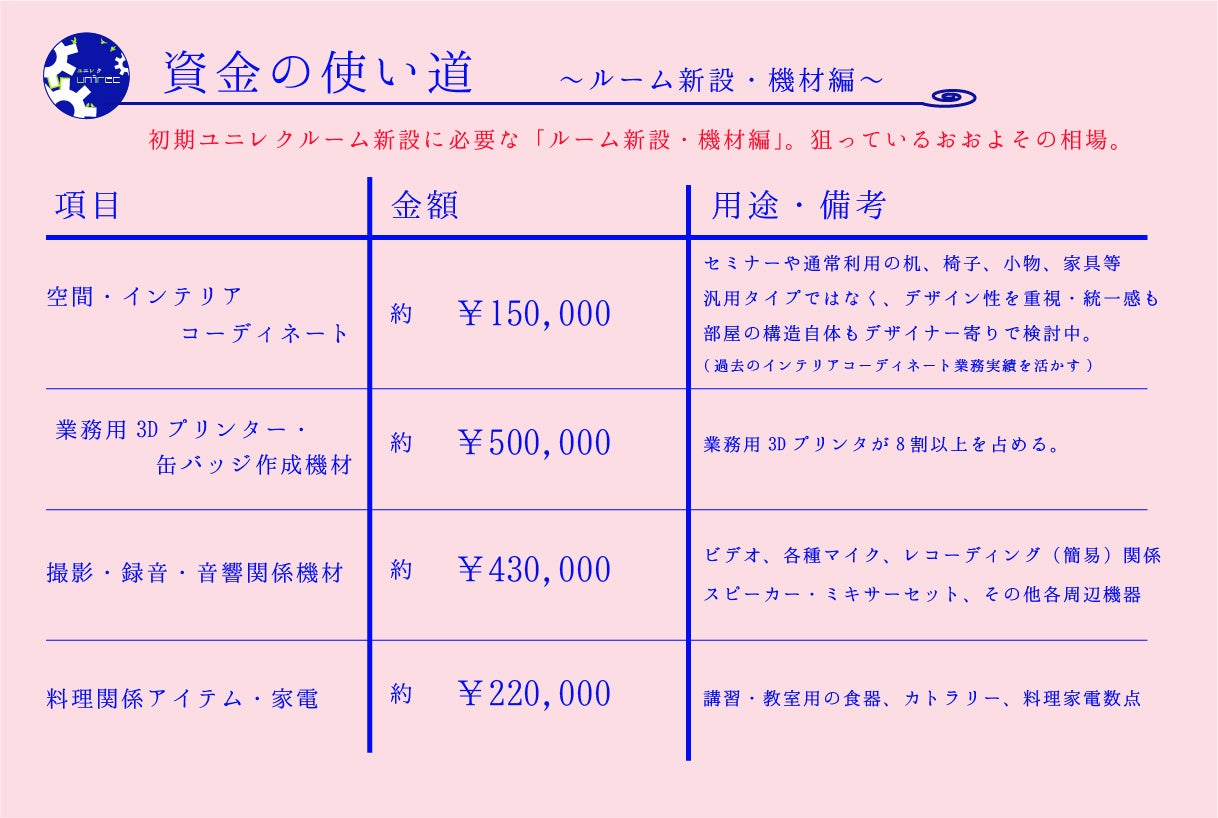 他、施設自体や年間かかるものの多くは除外して、機材・備品に集中しております。