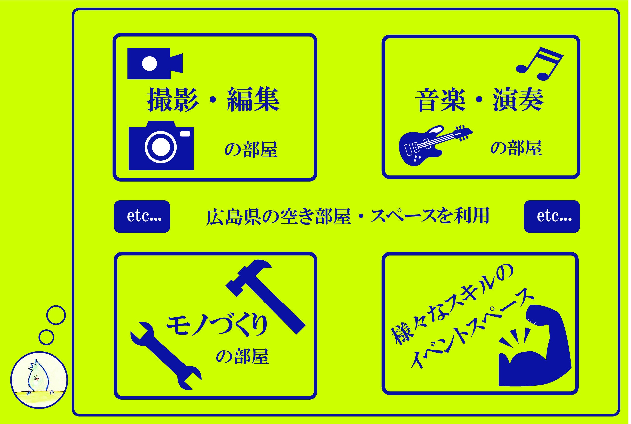 広島市に新設するため、ユニレクルーム自体を利用できるのは直接お越し下さる方にはなりますが、 Web発信も「音楽・デザイン」チームが配信する他、インターネットでのコミュニティやクラウドソーシングでの繋がりも想定しています。