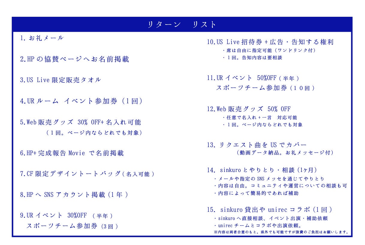 ・スケジュールによってはリターンの発送日が遅れる場合がございます。その際はご連絡いたしますので、あらかじめご了承いただけますと幸いです。