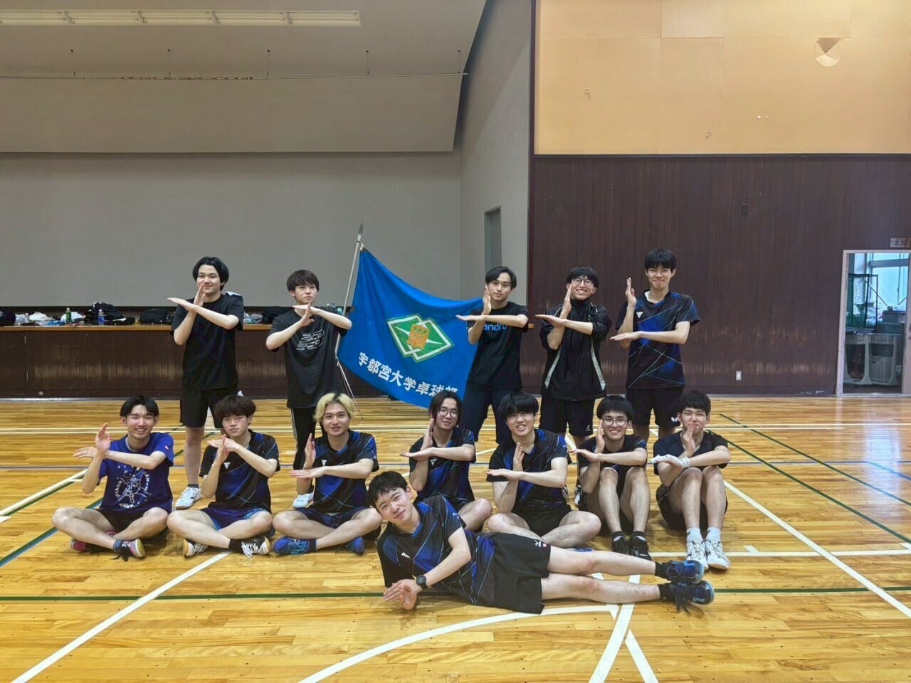 はじめまして。宇都宮大学卓球部主将の米山昌希と申します。私たちは峰第一体育館を拠点に、男女混合で活動している大学の卓球部です。火・木・金・土曜日に約3時間の練習を重ね、関東学生卓球リーグでの昇格を目標に日々精進しています。