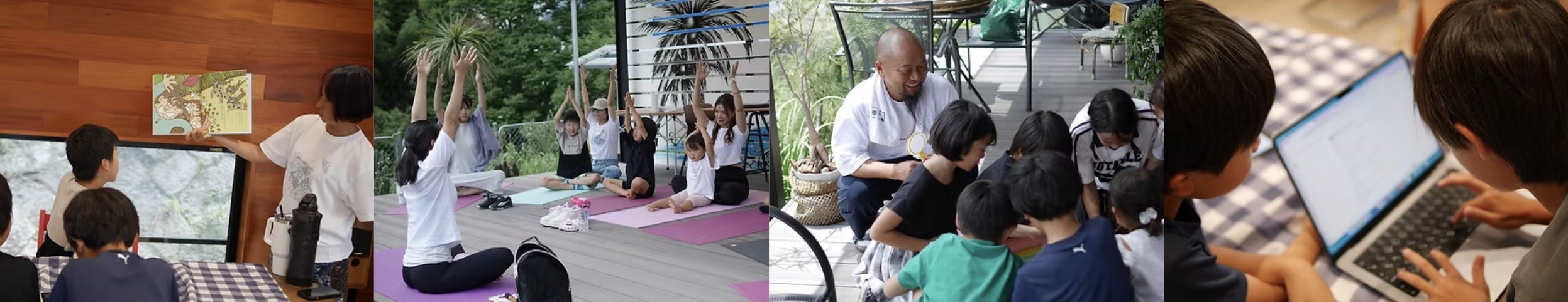 英語での絵本読み聞かせやヨガ、アウトドア遊び、AIでゲーム作りなどの体験も