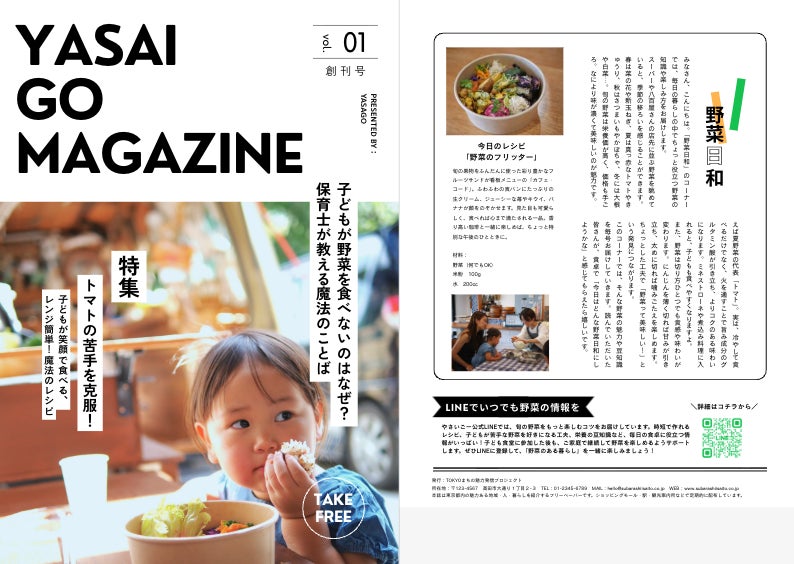 参加いただいたご家庭には、野菜をおいしく食べる工夫をまとめたフリーペーパー「やさいごー通信」を配布します。時短レシピや、苦手な野菜を好きになるコツ、栄養バランスの取り方などを紹介し、家庭での実践を後押しします。