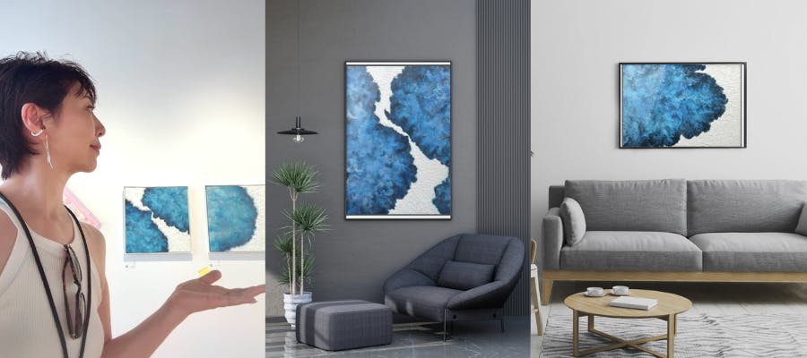 世界には、海を描く人はたくさんいますが、私の作品は、ただ単に美しい風景を再現するためのものでも、人に答えを与えるためのものではありません。作品を観た人が、それぞれ自分の心の奥にある『本当は、どう生きたいのか?』という問いに、そっと触れるための『問い』を表現したものです。