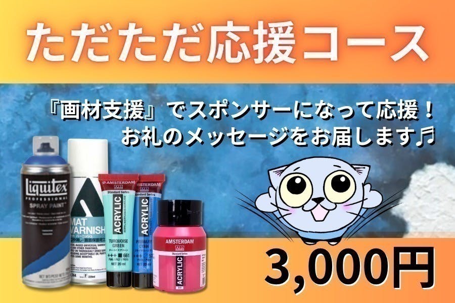 ■まずは、ただただ応援、支援したい方向けのリターンです。こちらは、主にSACRA.の制作の画材購入を支援するよ!という内容のリターンとなっています。