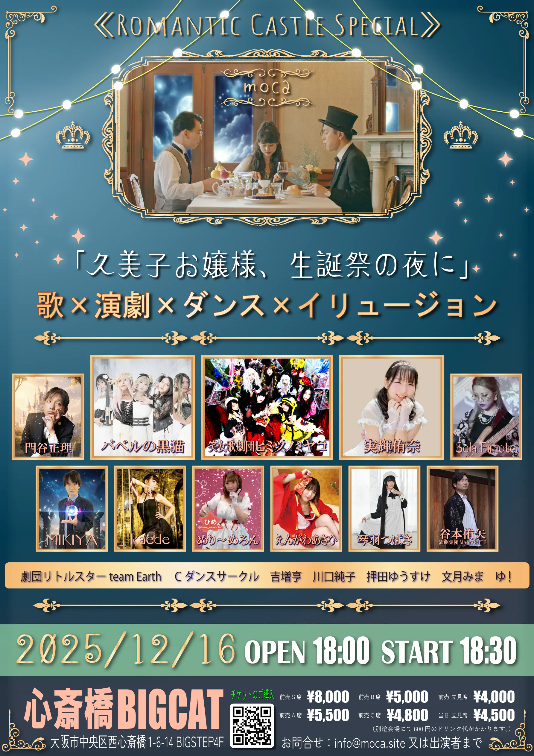 来たる「2025年12月16日」、関西最大級のライブハウス「心斎橋BIG CAT」にて行うmocaのイベント、「Romantic Castle Special」を成功させることです!