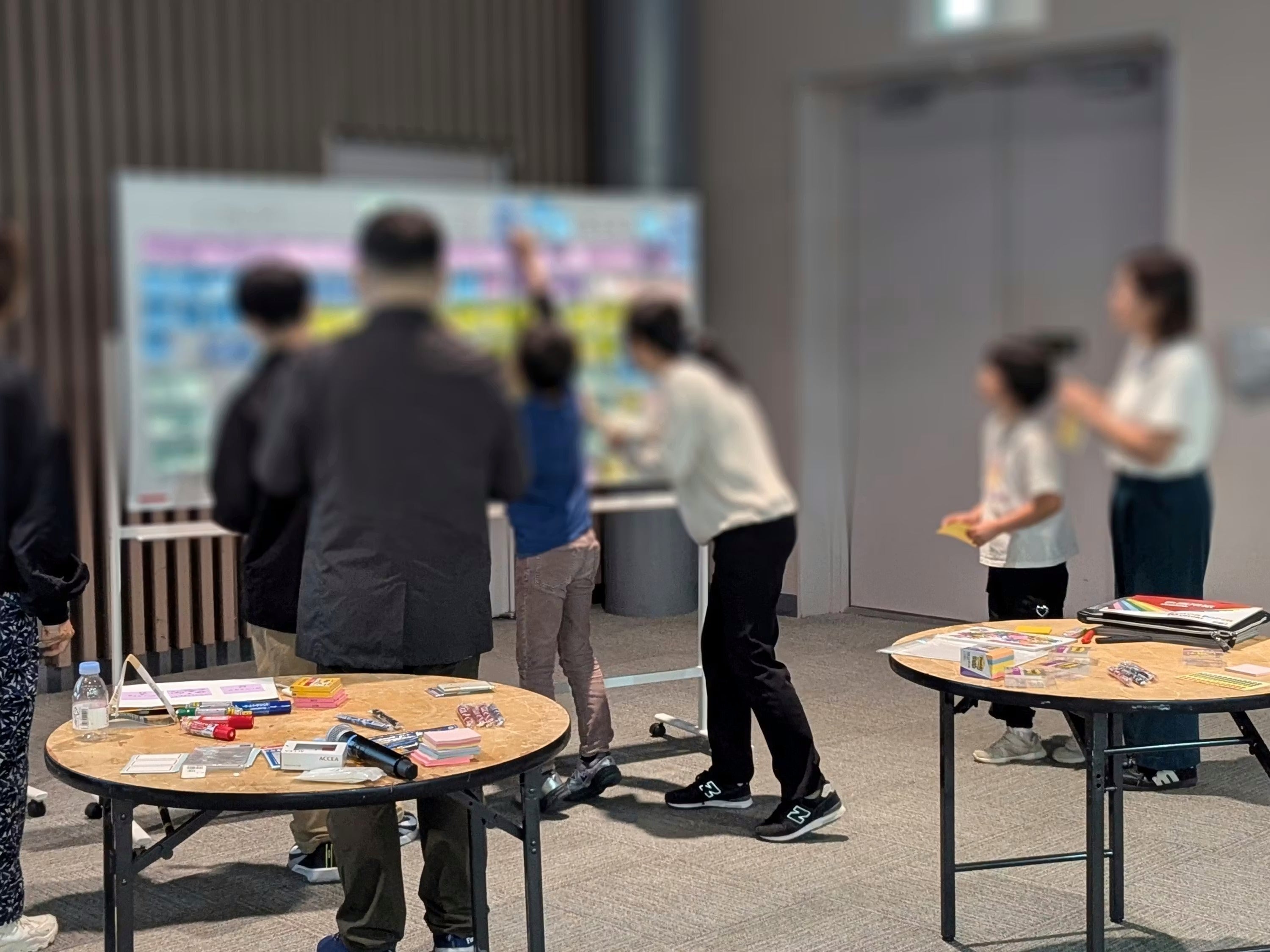 上図だけ見るとナニコレ?感があるかもしれませんが、考えたアイデアが少しずつ形になっていくにつれ、子どもたちは言われなくても「もう少し良くしたい」と考え始め、自然と気持ちが高まっていく様子が見られました。会の途中から参加されたお子さんも、これまでの経緯を簡単に説明するだけで、すぐに輪の中に入ってもらうことができました。また、同行された親御さんにも、想像以上に前向きにご参加いただけたことは、私たちにとって意外であり、大きな手応えでもありました。今後、小さなお子さんが塾に参加される場合には、親子で一緒に参加できる形を想定しています。また、会場に足を運ぶことが難しいお子さんに向けては、オンラインでの参加形態も検討していきたいと考えています。