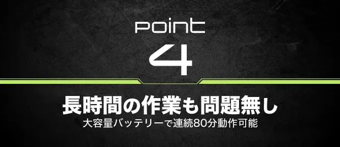 1500mAhの大容量バッテリーで、最大80分連続使用が可能。毎日のDIYから現場作業まで、頼れる相棒になります。