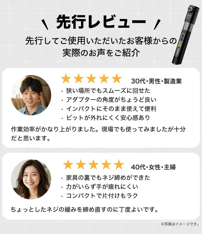 A. はい。Anglepro Xはシンプルな構造で、工具の知識がない方でも直感的に使えます。特に直角アダプターは装着も簡単で、ネジを締める/緩めるだけならすぐに慣れていただけます。