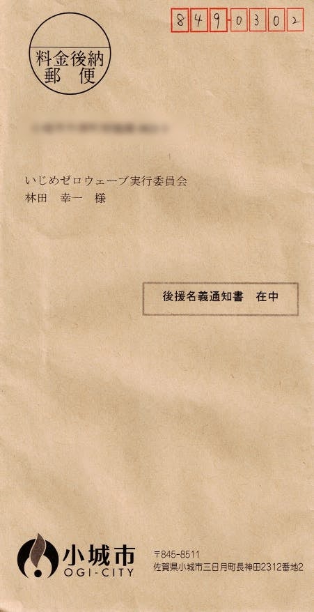 このクラウドファンディングのページにもチラシなどを掲載していますがそれにも小城市様、小城市教育委員会様のロゴおよび文字を掲載させていただきました。