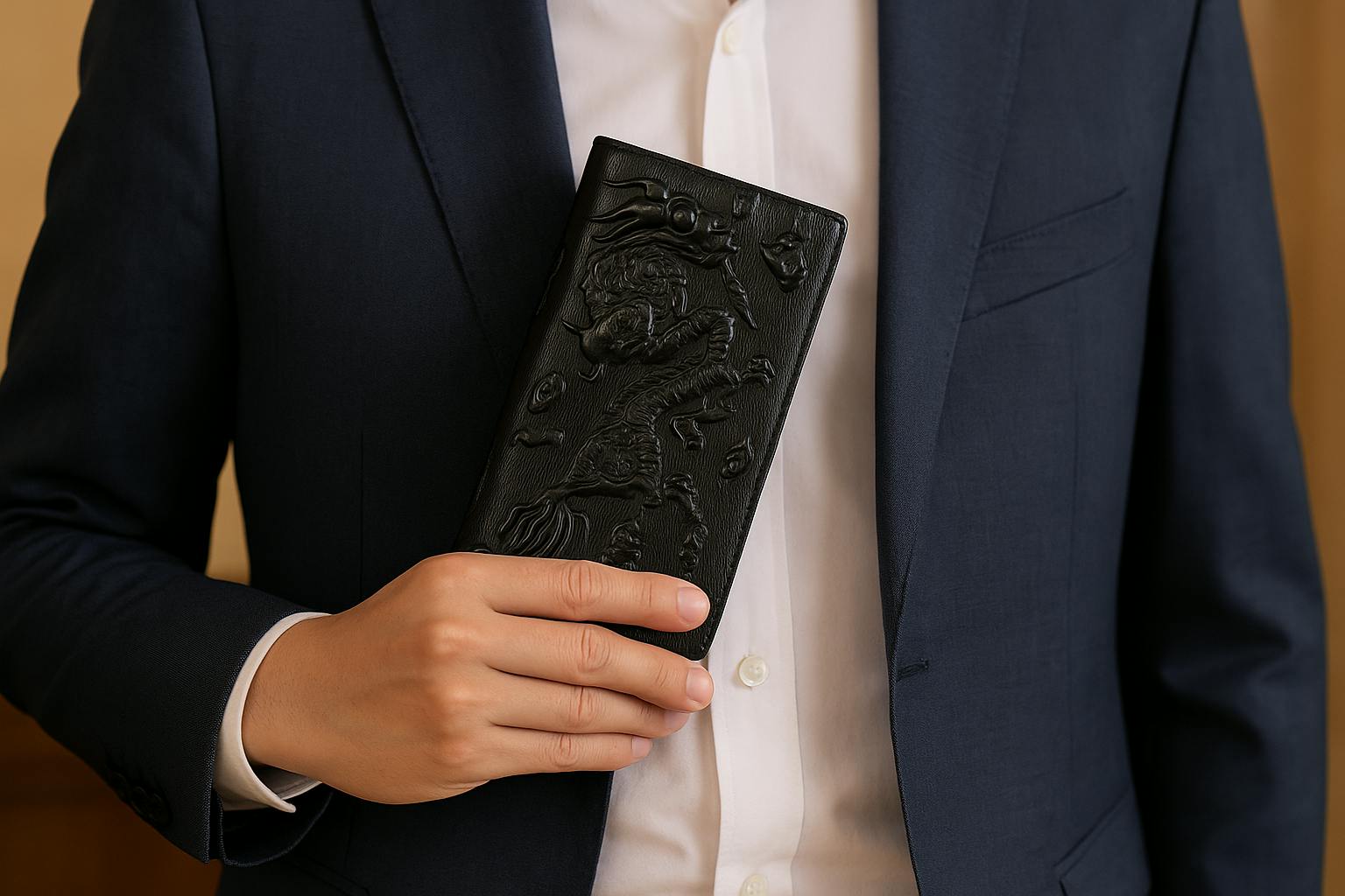 龍が刻まれた本革財布は、力強さの中に上品さを備えています。