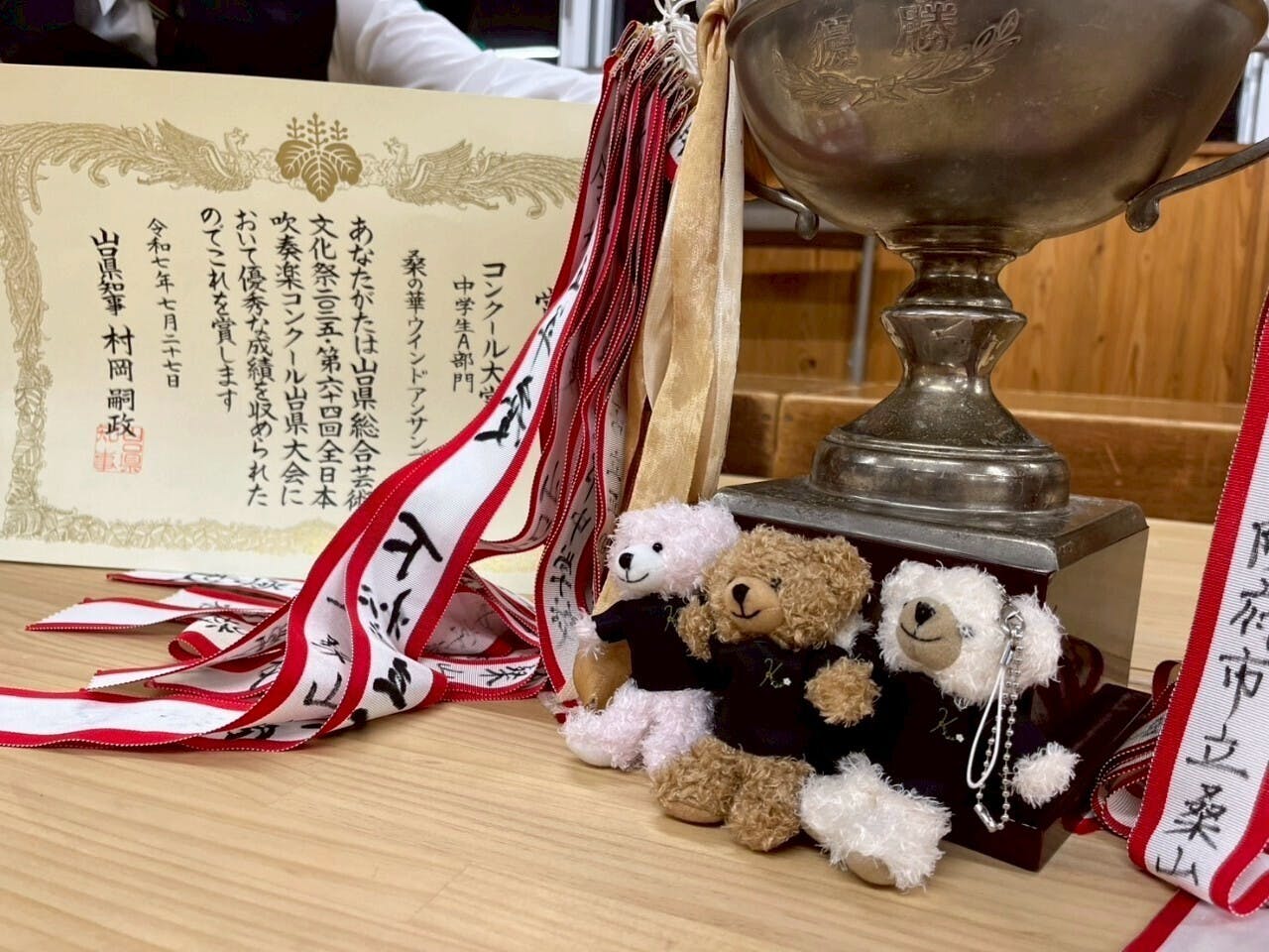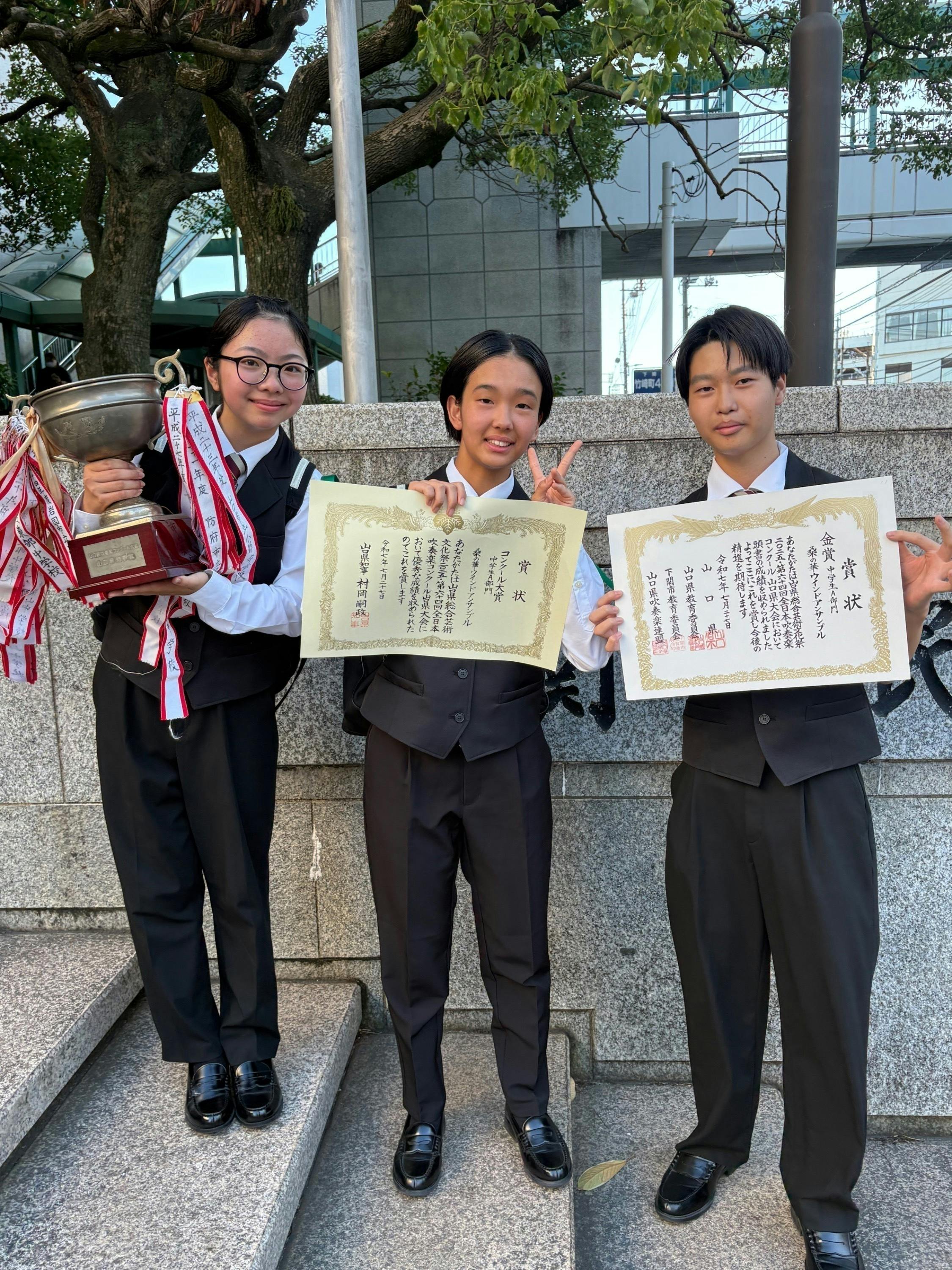 昨年度2025年3月にアンサンブルコンテスト全国大会に挑戦。さらに今年度の吹奏楽コンクールでは山口県大会で金賞・大賞を獲得し、中国大会でも金賞を受賞、全国大会推薦の栄誉を手にしました。
