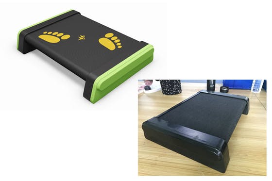 そこで、見てすぐに「足を載せて使うエクササイズ器具だな」とわかっていただけるよう、足型をベルトの上に施す一工夫を加えました。