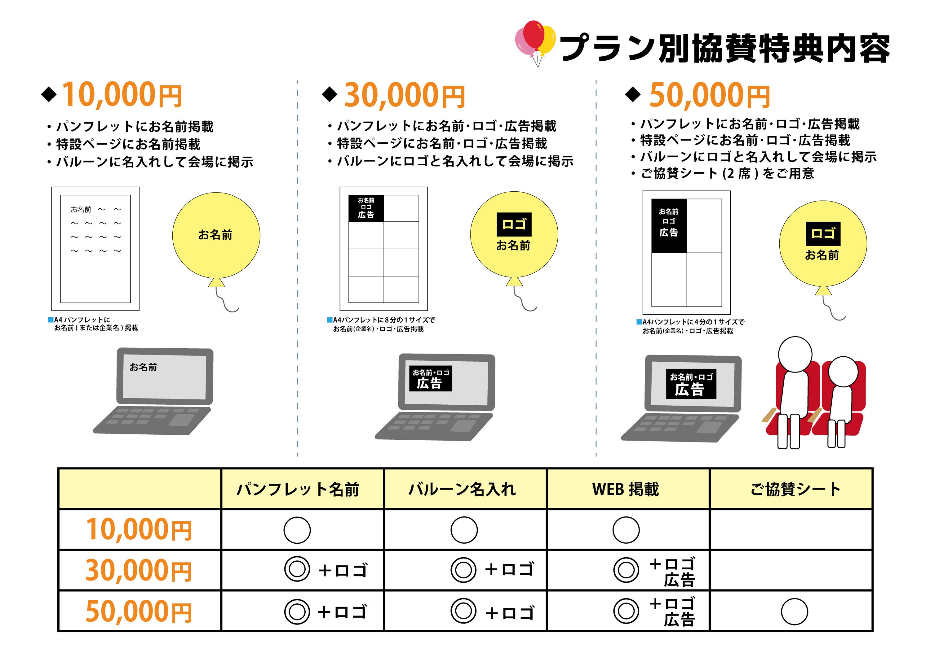 ◇イベントへのご協賛として、金額に応じてお名前やロゴ、広告を掲載させていただきます。