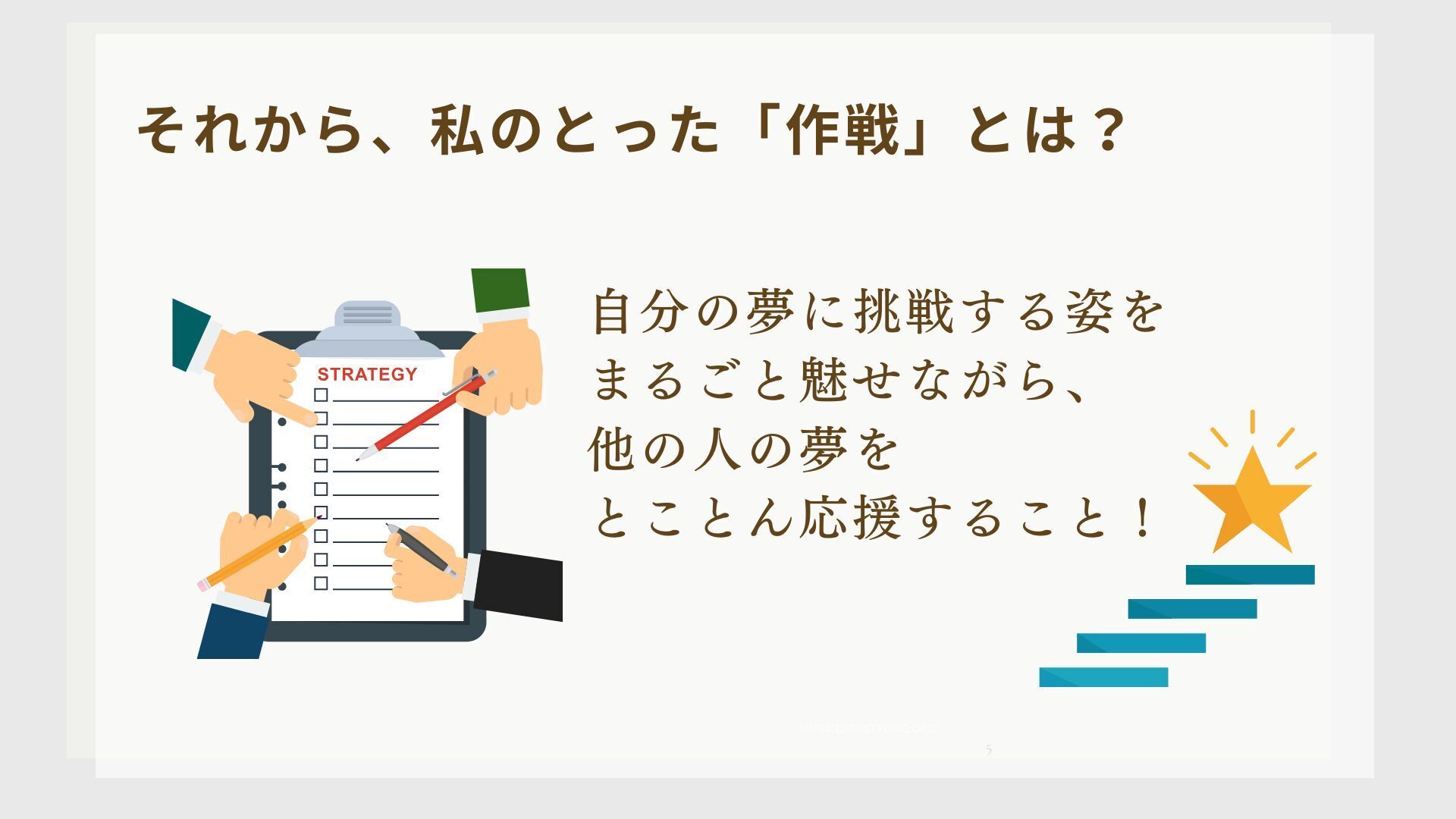 自分が夢に挑戦する姿をそのまま見せながら、他の人の夢をとことん応援すること。