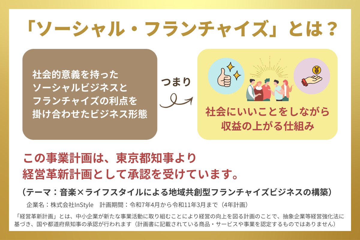 代表・笑 満ちるが、ソーシャルフランチャイズ構想の次なる展開を語り、音楽を仕事として届けたい方、事業として発展させたい方に向けて、“次の形”を共に描きます。少人数でじっくり対話しながら、あなたの音楽人生を進化させるヒントを持ち帰ってください。