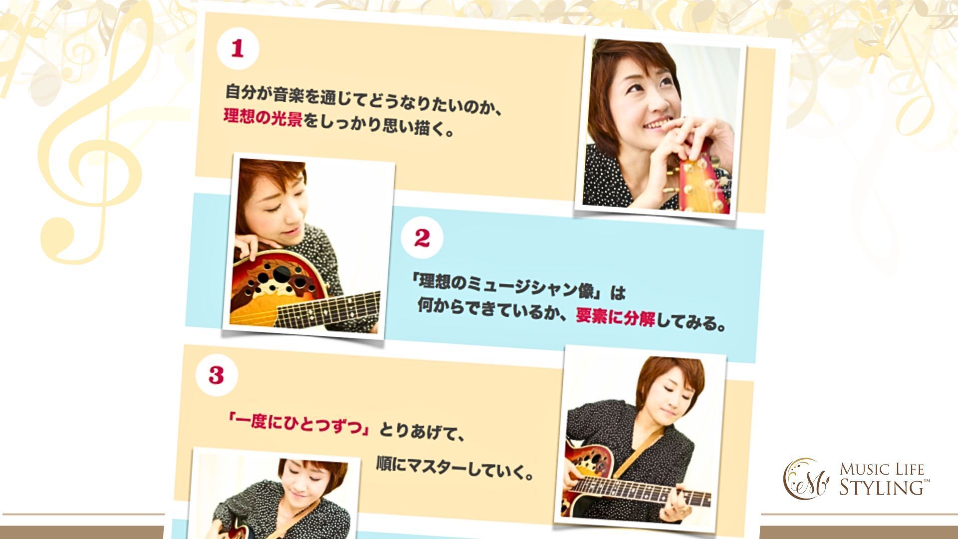 1. ミュージックライフスタイリスト®という新たな専門職を確立し、音楽経験を価値あるキャリアへ。