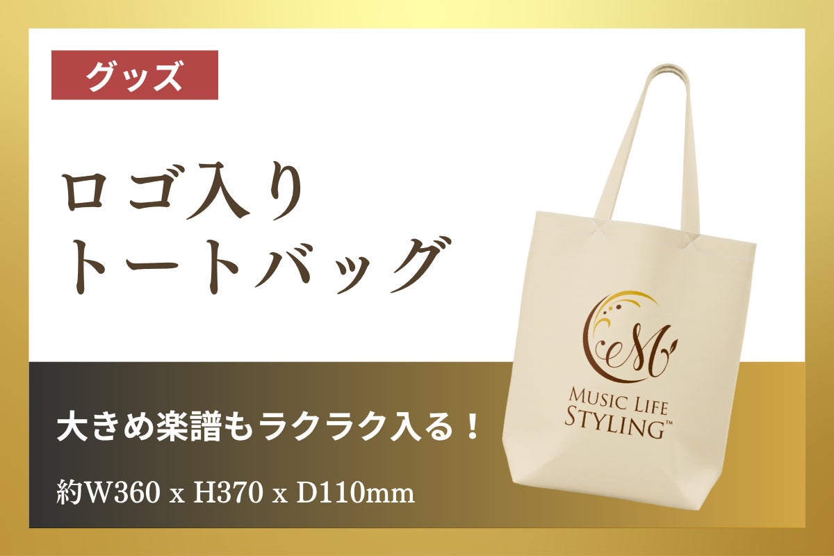コミュニティメンバーの声から生まれた、大きめな楽譜もラクラク入るゆったりトート。ミュージックライフ・スタイリングのロゴが美しく引き立ちます。