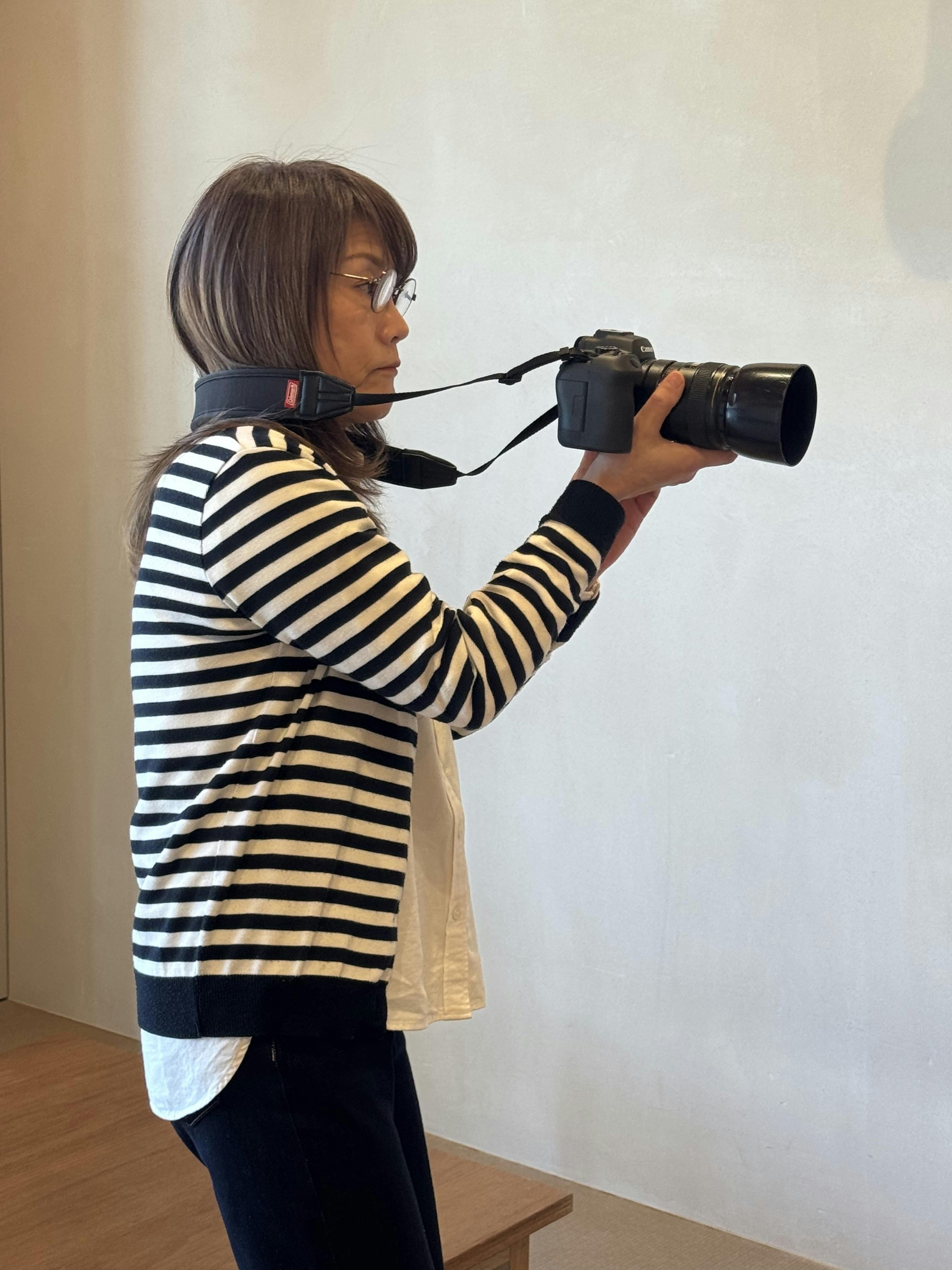 すでにコミュニティーカレッジなどで、スマホでの写真教室など数々の経験がある彼女の指導のもと、カメラマンを撮る!