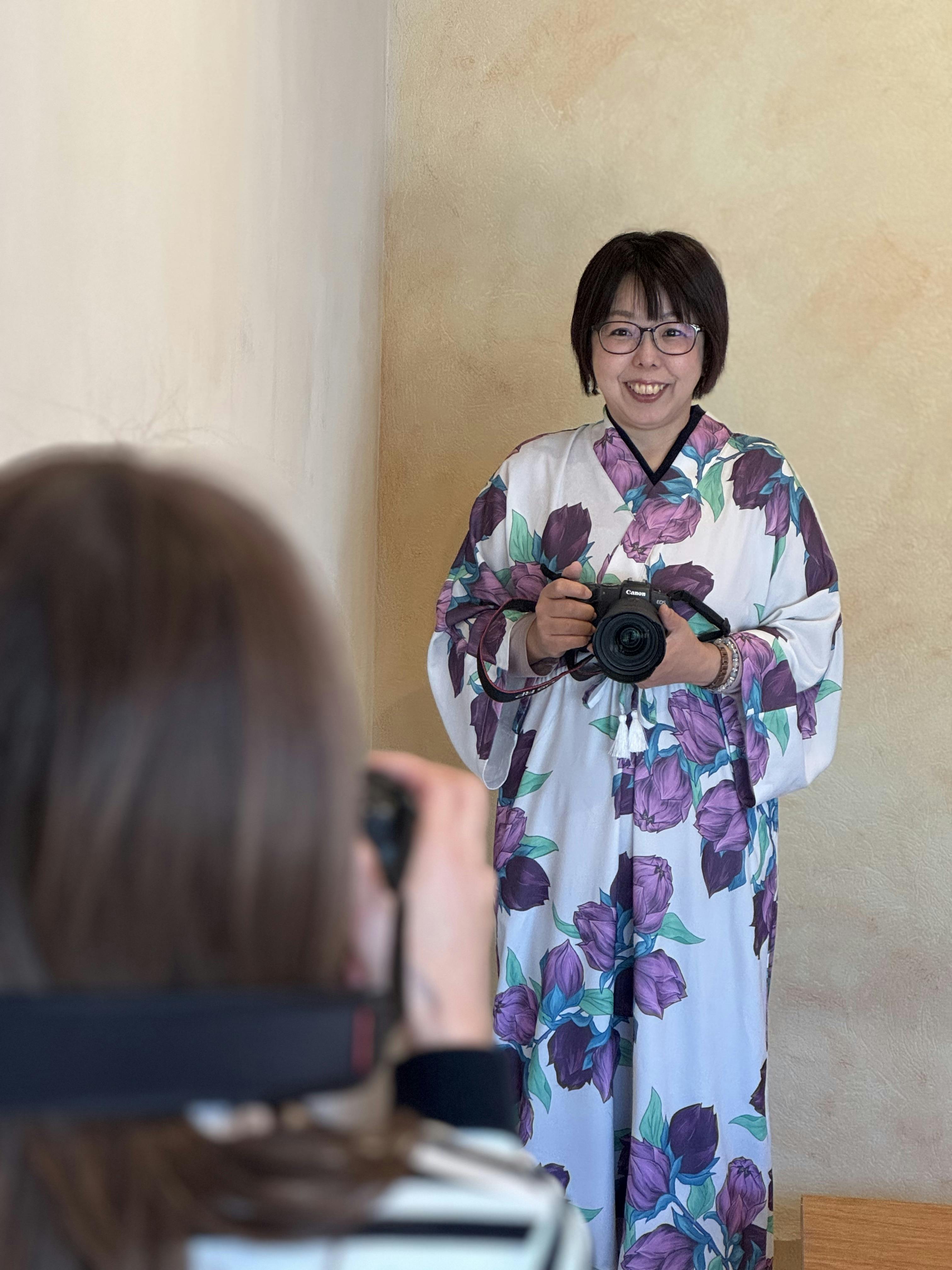 後半はいつもカメラマンとして撮る側のなかがわさんに撮られる側になっていただき、カメラ指導の上でモデルのメインナビゲーター・花笑みの手体調米川友美さんが撮影!