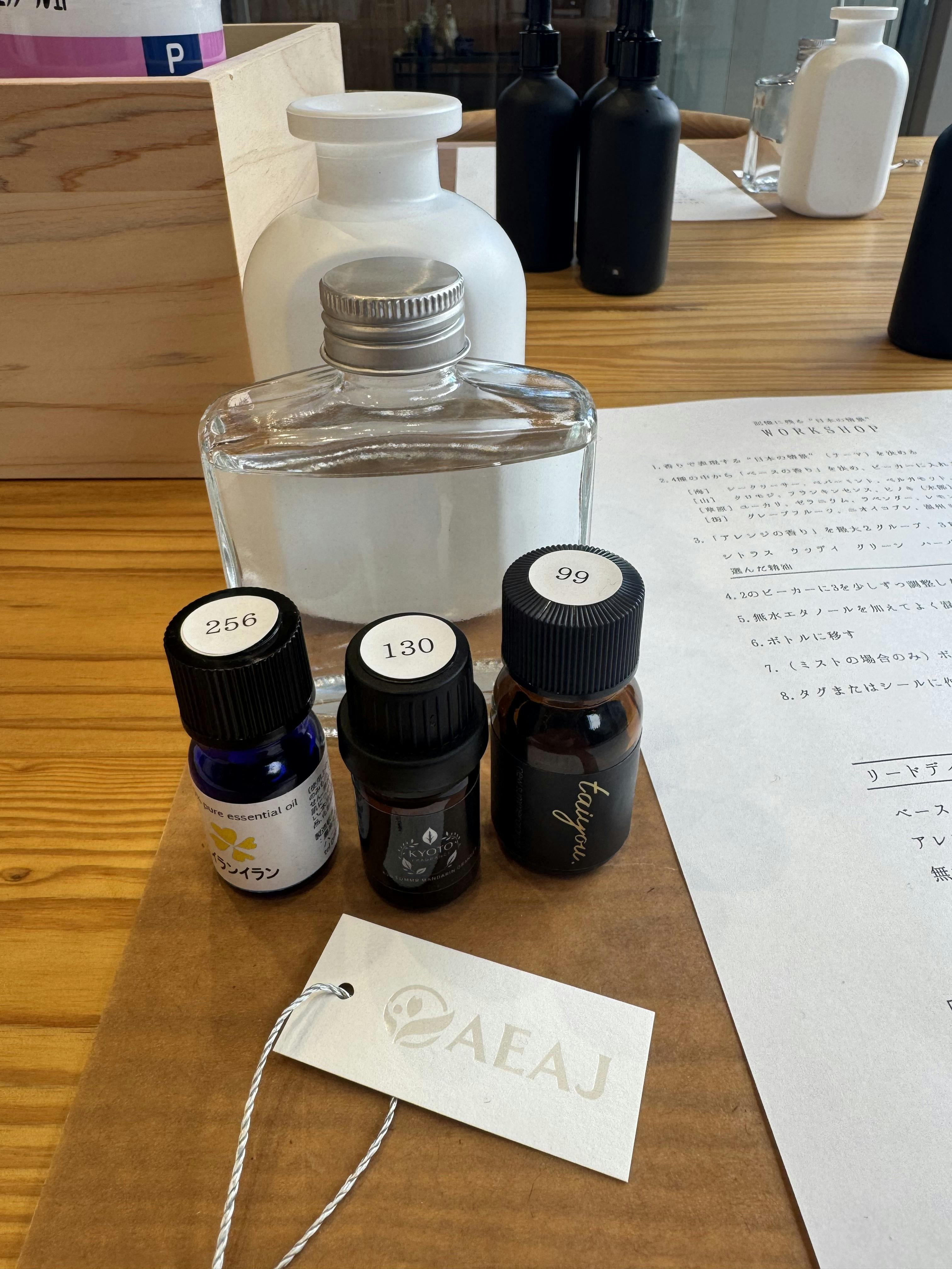 現在aeajでは、和精油の企画展があり、千葉県の山武杉の香りもクンクン楽しめました。
