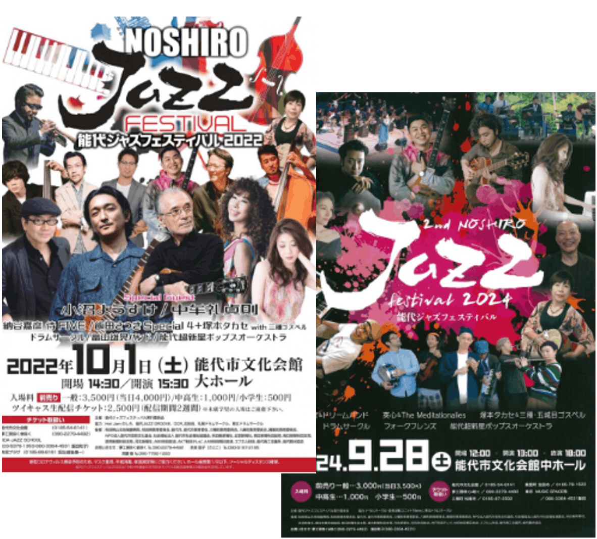 「能代の皆さんにもっとJAZZを身近に、気軽に楽しんでもらいたい!」――そんな想いから2022年にスタートしたのが「能代JAZZフェスティバル」です。多くの方にご支援をいただき、2024年には第2回を開催することができました。