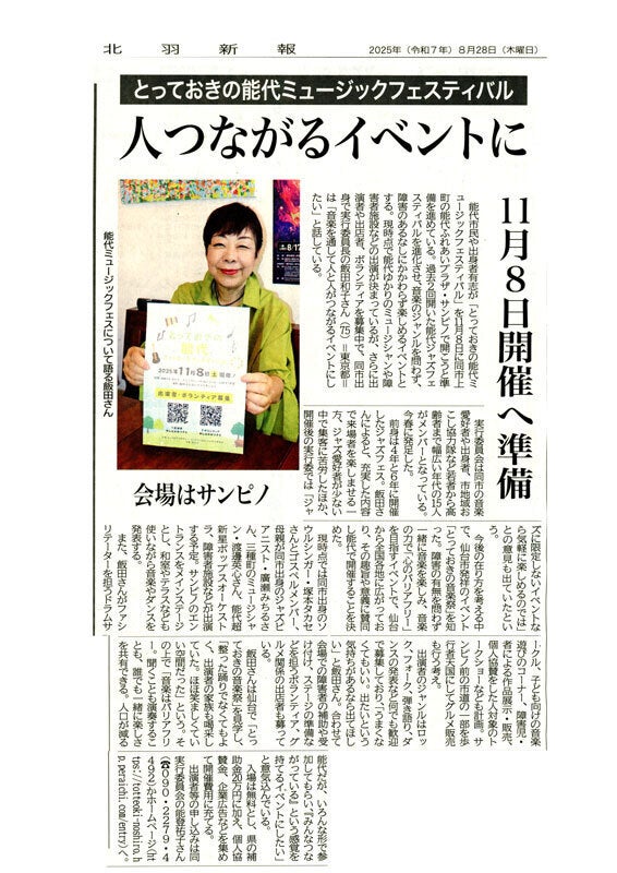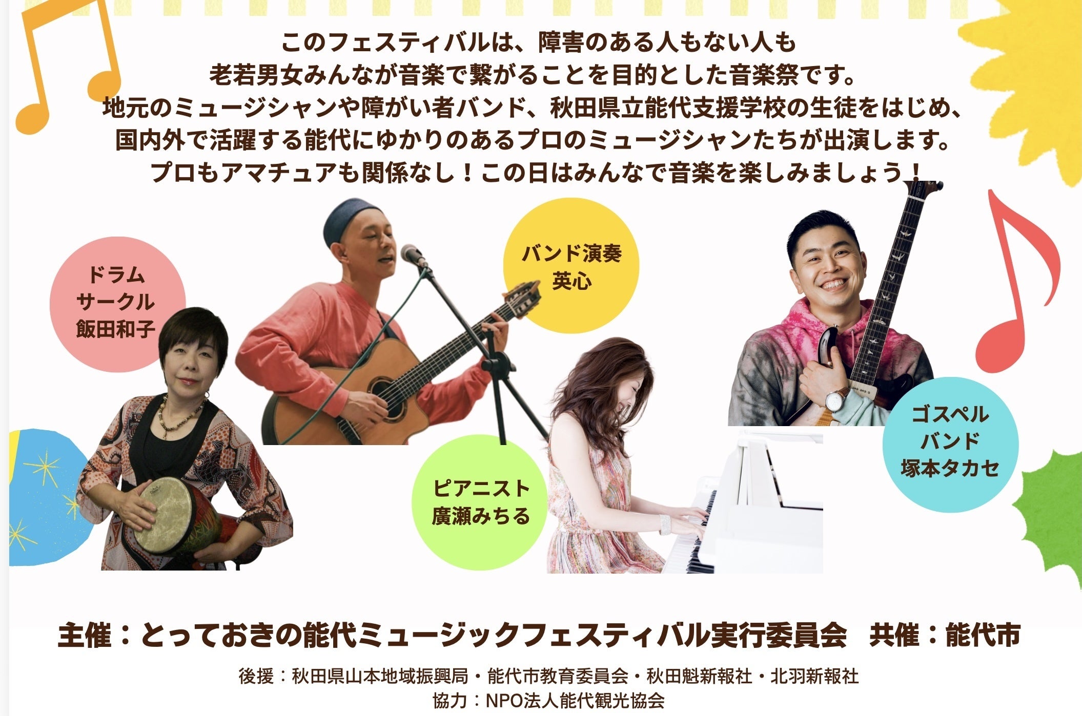 ありがたいことに、能代市からも全面的なご協力をいただけることになりました。地域の皆さんと一緒に準備を進めながら、「音楽を通じて笑顔と出会いが広がる一日」をつくっていきたいと思っています。