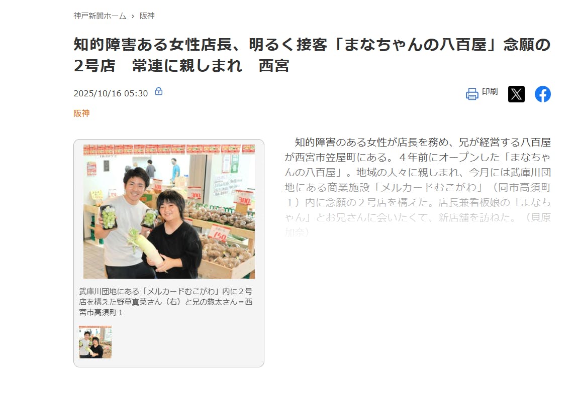 10月16日、店長と兄惣太が取材された記事が神戸新聞に掲載されました。