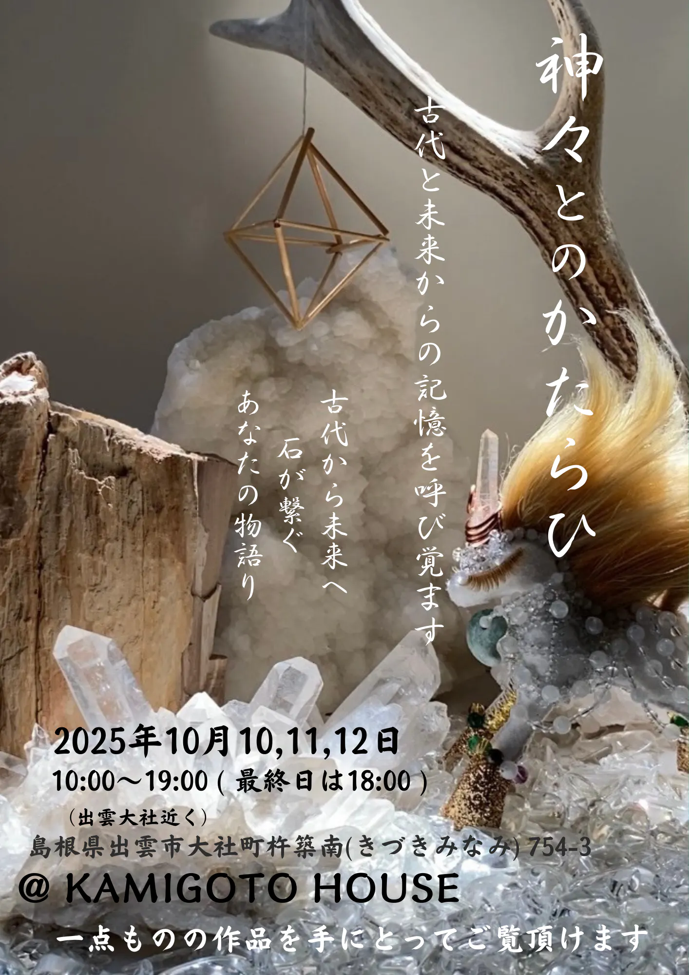 個展の準備の中で、神々しいユニコーンの出雲大社奉納にも立ち会わせていただき、始まりにふさわしい清らかなエネルギーを感じています