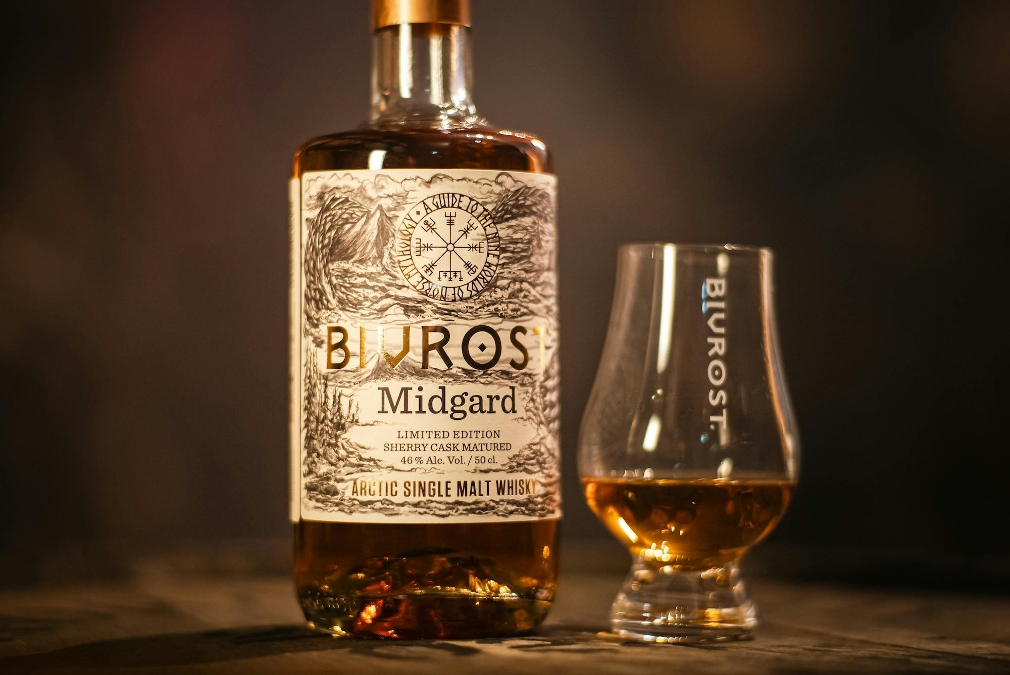 そんな、北欧神話におけるこの世の世界そのものである巨大樹ユグドラシルの名を冠するビヴロストの北極シングルモルトウイスキーは、真夜中の太陽とも呼ばれるほぼ一日中明るい夏の白夜とほぼ一日中が暗闇となる冬の極夜という特異な北欧ならではの環境で育った大麦と氷河の水でつくられ様々なシェリー樽で熟成された香り高いウイスキーに仕上がっており、世界最北端の蒸溜所の誇りを感じる自慢の1本である。そんなシングルモルトウイスキーをひと口含んで目を閉じると、まるで北欧神話の世界へ飛び立つような不思議な感覚を覚えるかもしれない。