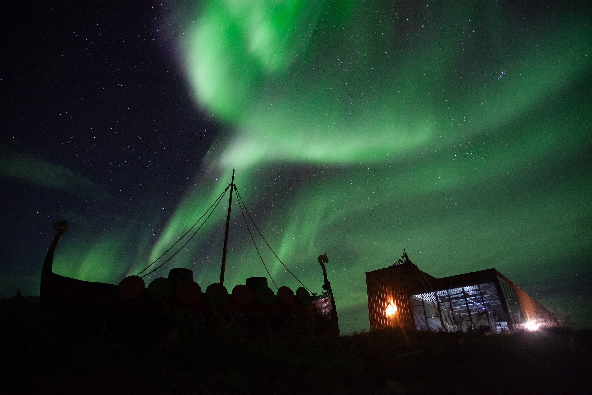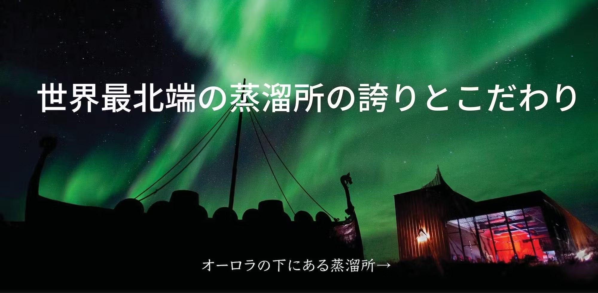 オーロラに包まれる蒸溜所日常とかけ離れたその広大な美しい景色と夢のようなオーロラで有名なこの土地には毎年多くの観光客が世界中から訪れ、その異次元の世界のような神秘的な光景を目の当たりにし感動に包まれる。
