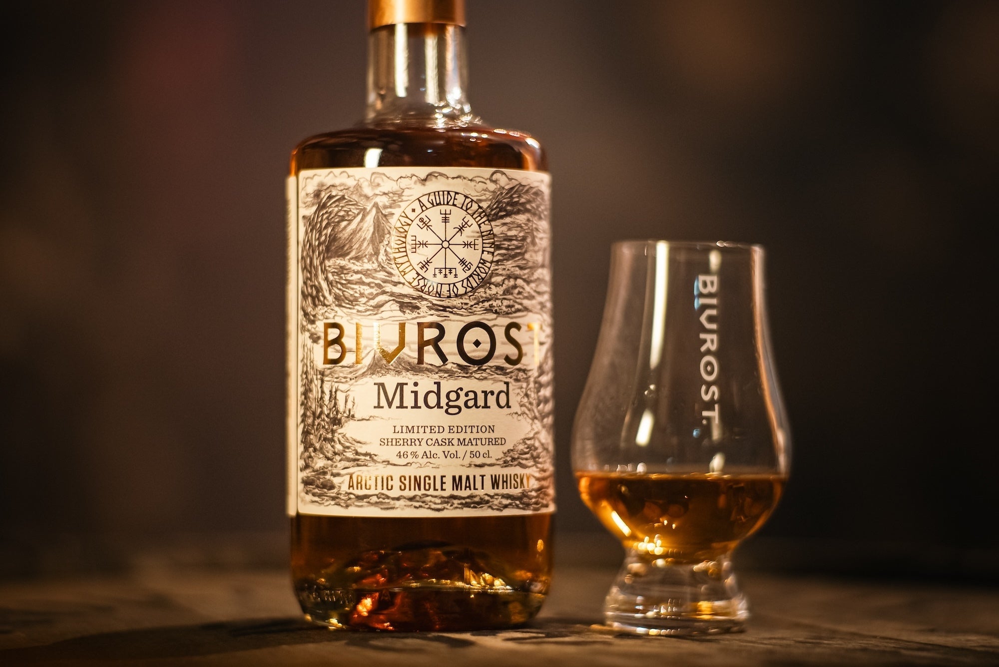 地元北極圏ならではの特徴を生かした他に類を見ない同蒸溜所が作るお酒のブランド名は、ヴァイキング語で「揺れる虹の橋=オーロラ」の意味を持つ「BIVROST(ビヴロスト)」と名付けられた。その昔ヴァイキング達は、空に七色に輝くオーロラが神々しい黄金に輝く神々の国「アスガード」と人間の住む世界「ミッドガルド」をつなぐ魔法の橋だと考えていたそうだ。そしてその名前の通り、氷河の水で作られるビヴロストシリーズのおいしさは、まさに「天にも昇る」美味しさで味わった人々を魅了してやまない。