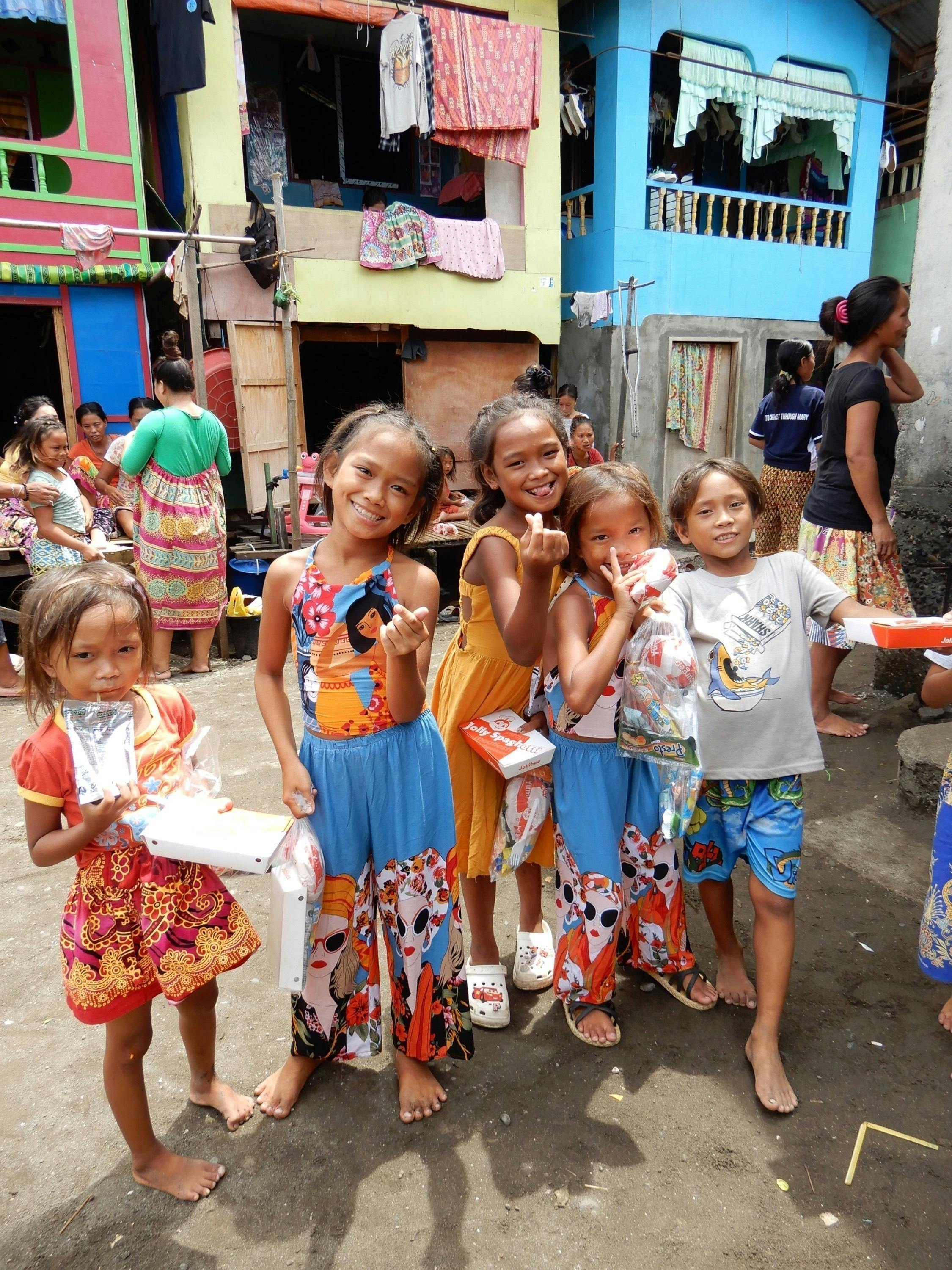 フィリピン、マニラのドンド周辺にて日本から預かった衣類、日本のお菓子を寄付