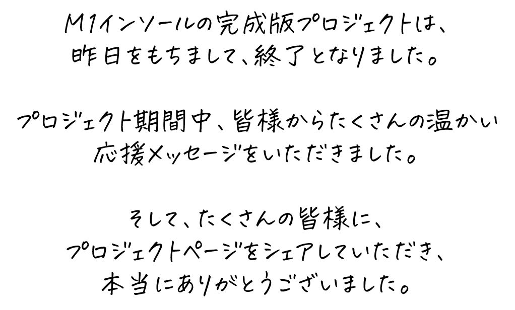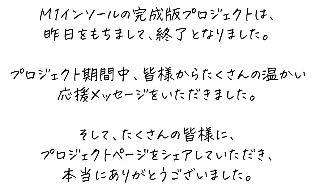 そのような中でも、皆さまのご支援のおかげで、最低限の目標を達成することができました。心より感謝申し上げます。