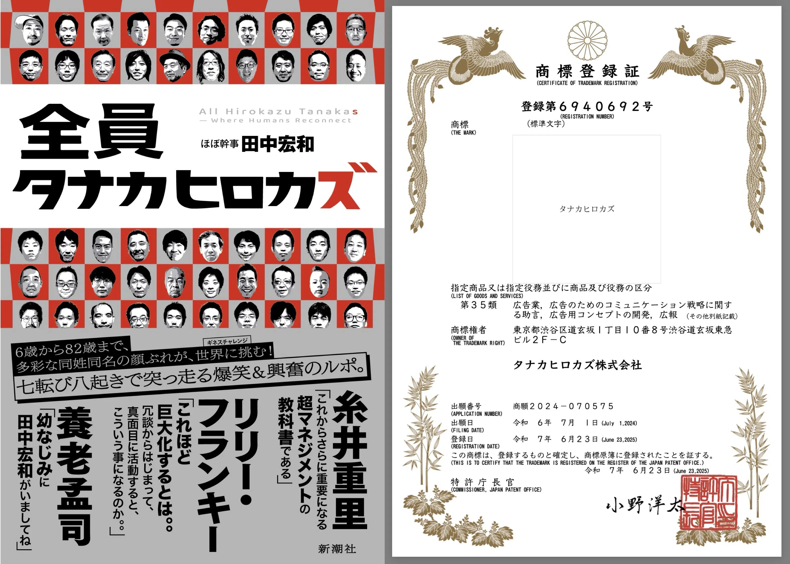 またこれまでの活動をご評価いただけたのか、6月には「タナカヒロカズ」を商標として特許庁に認めていただくことができました。