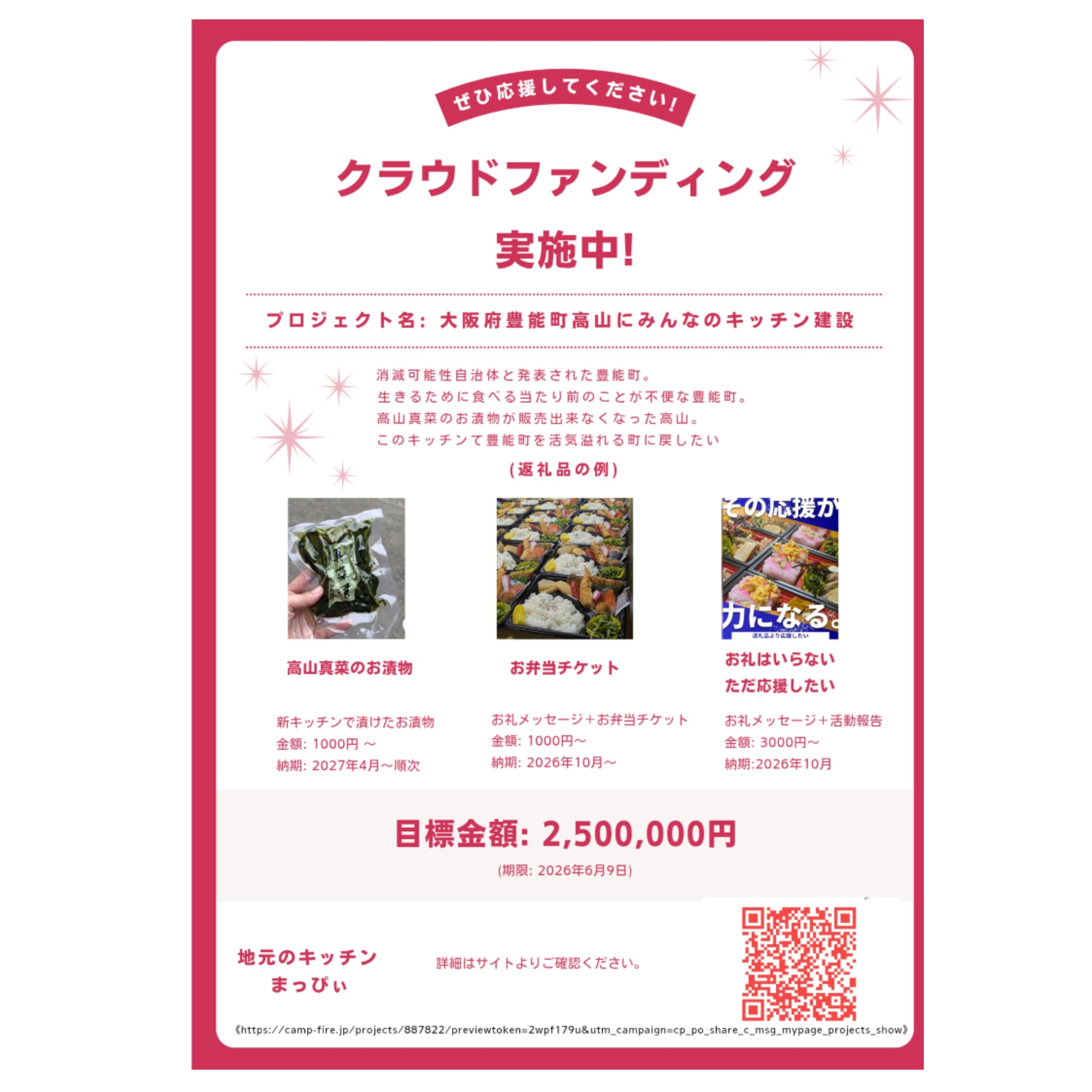 「豊能町を食事で元気にしたい。だけど食事を作れるキッチンがない」