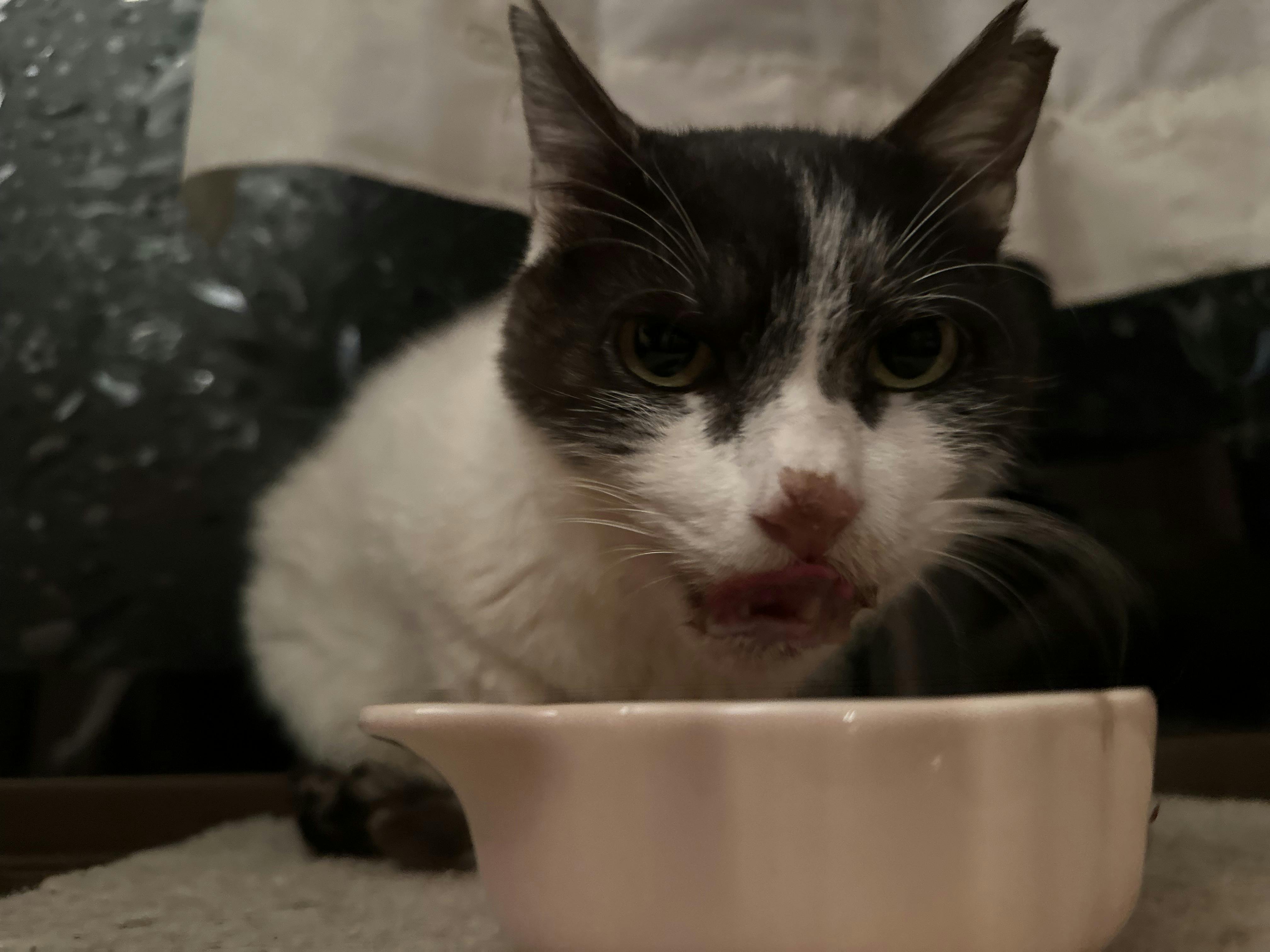 そして、今日のグレー白ちゃん、朝からよだれが出ていません。口周りが綺麗なままです。
