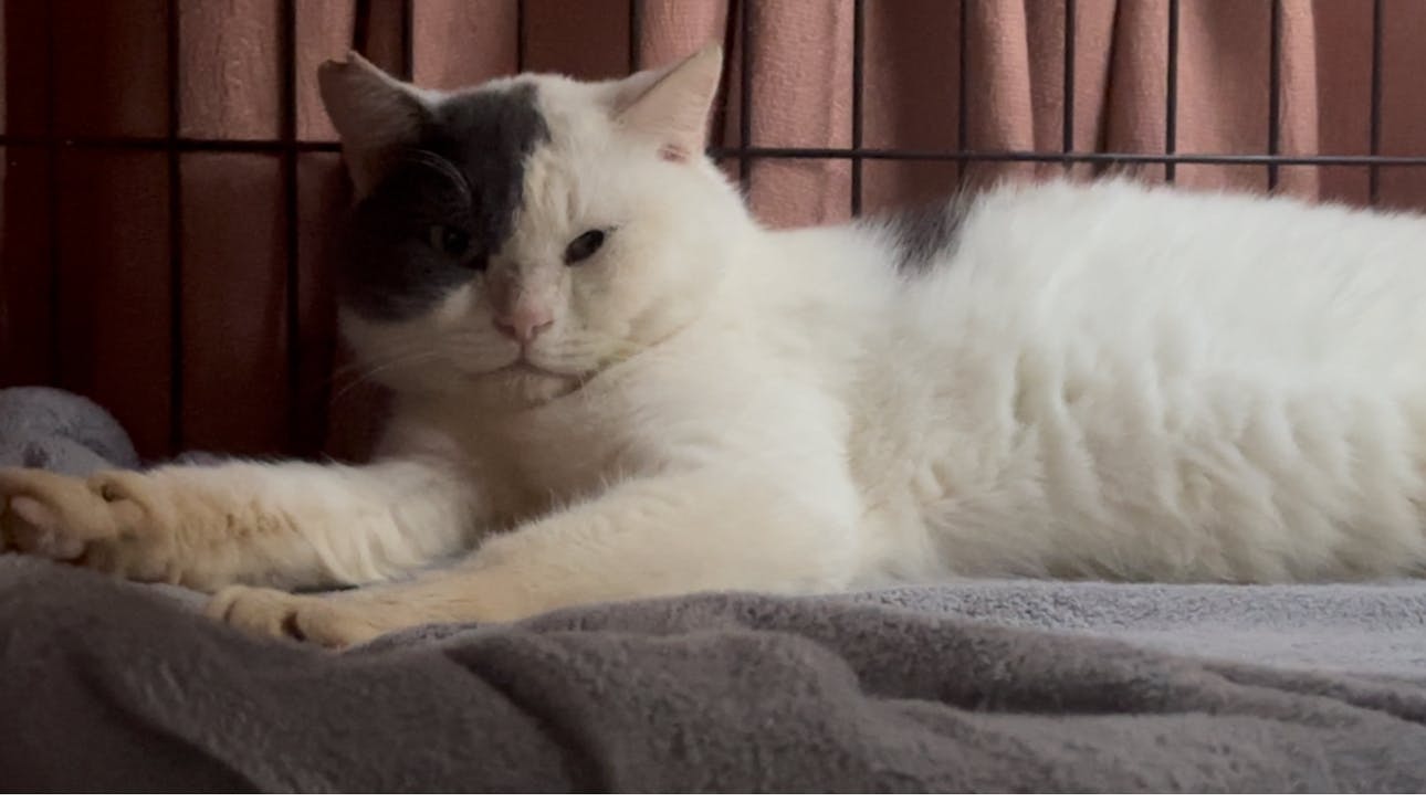 いちばん弱にしているのですが、暑くなるとこちら寄り手前のヒーターのないところで香箱座りしています。