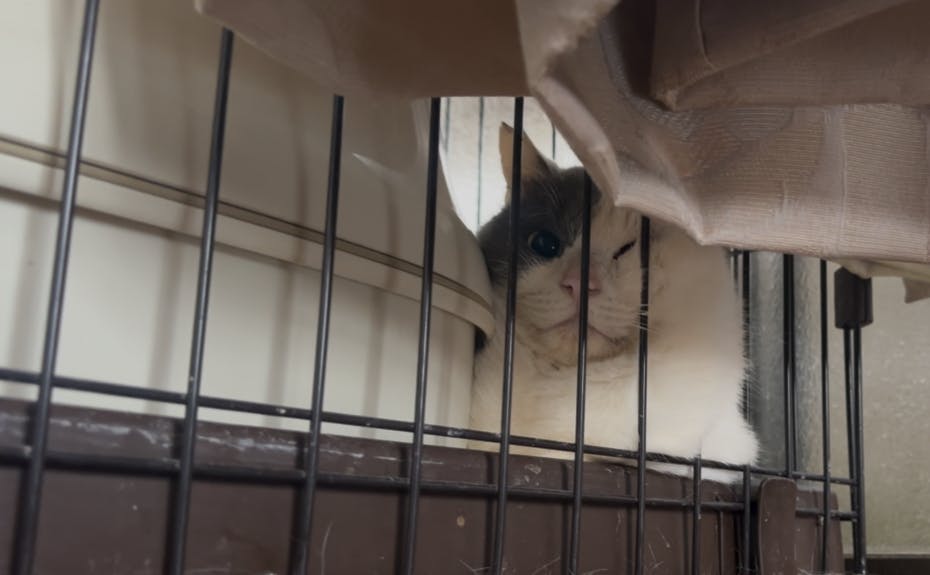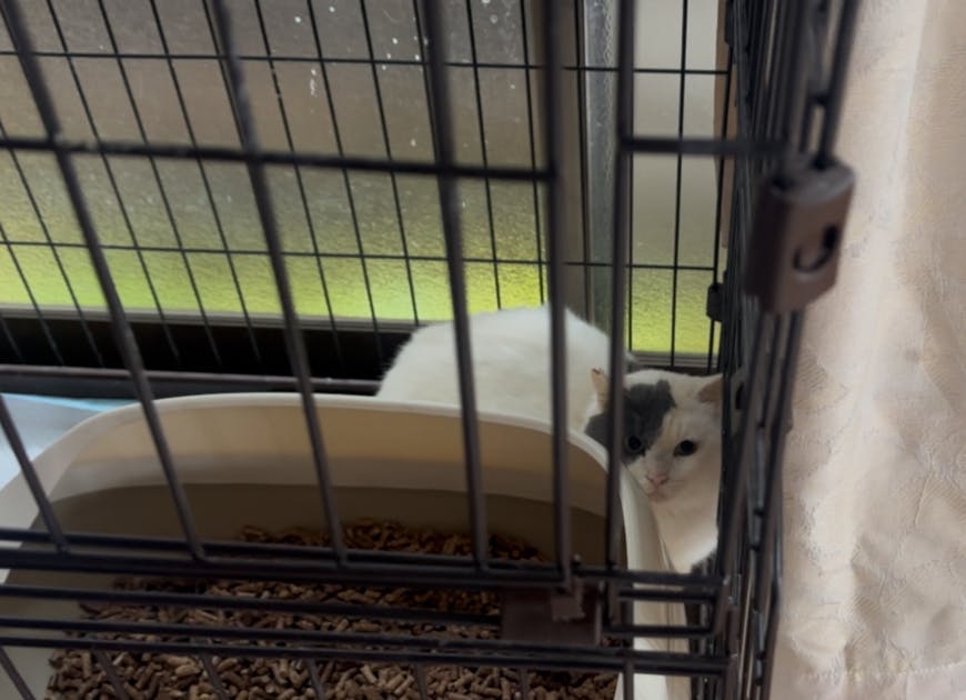 朝、野良猫ちゃんにドライのごはんをあげたら、すぐ食べ終わり2段目に戻っていったのに…